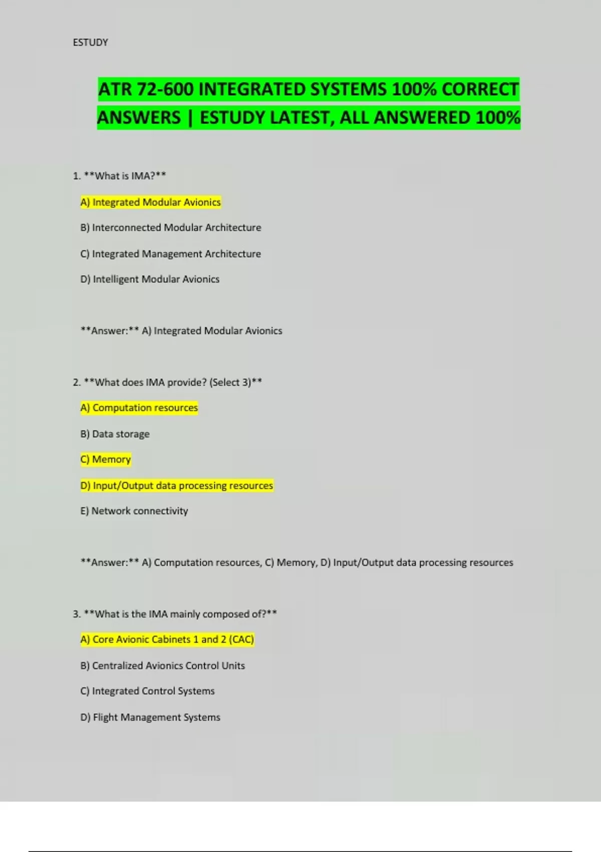 ATR 72-600 AUTOMATIC FLIGHT CONTROL SYSTEM 100% CORRECT ANSWERS | ESTUDY LATEST, ALL ANSWERED 2024/2025