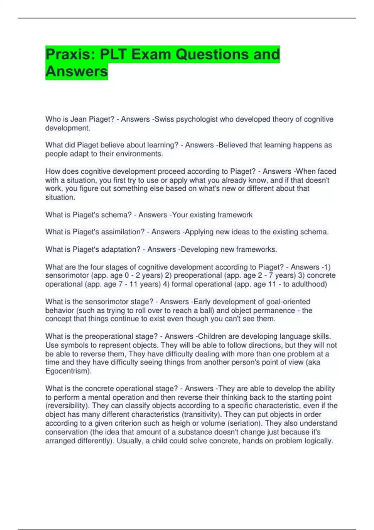 Praxis: PLT Exam Questions and