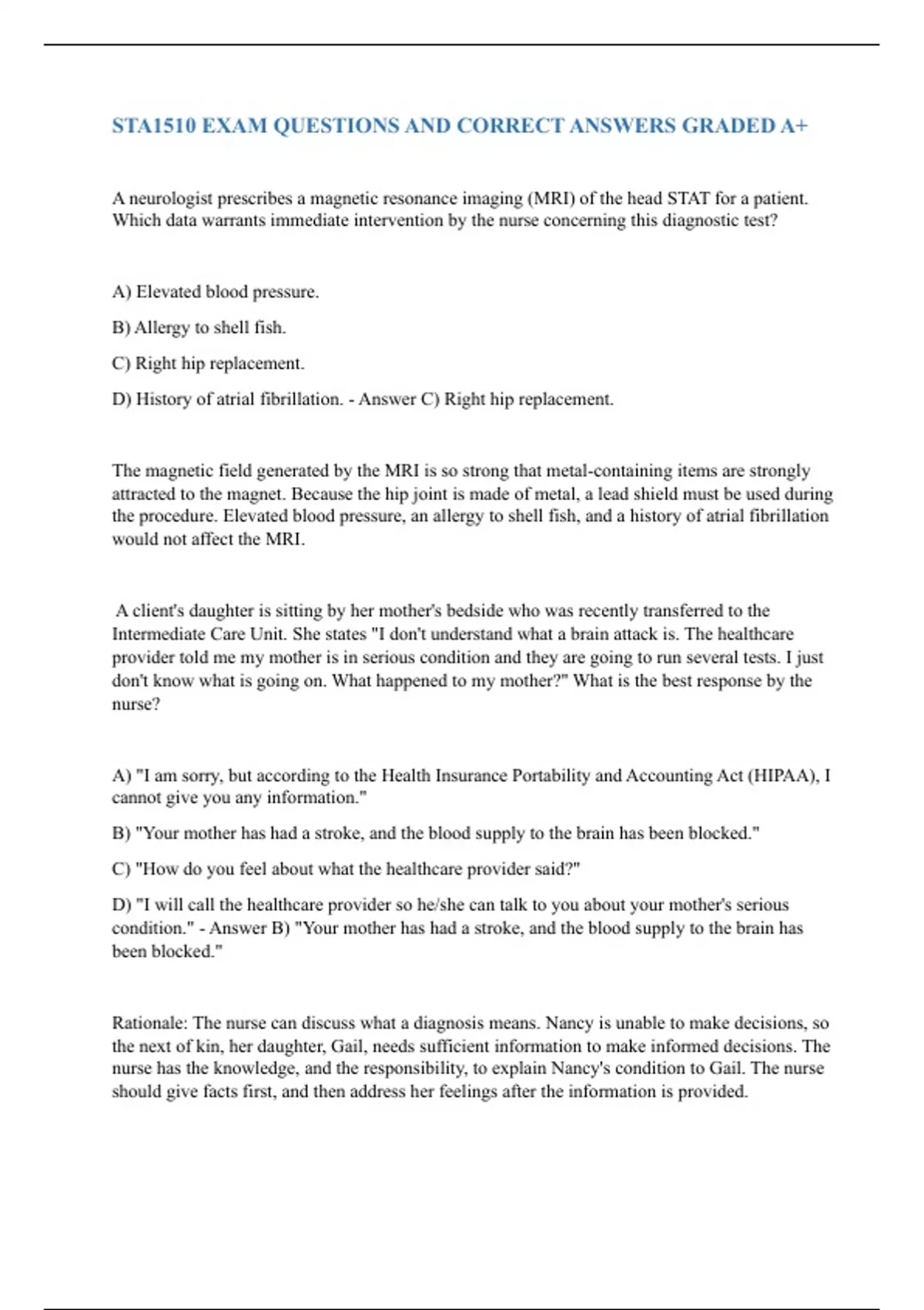 Rationale: The nurse can discuss what a diagnosis means. Nancy is unable to make decisions, so