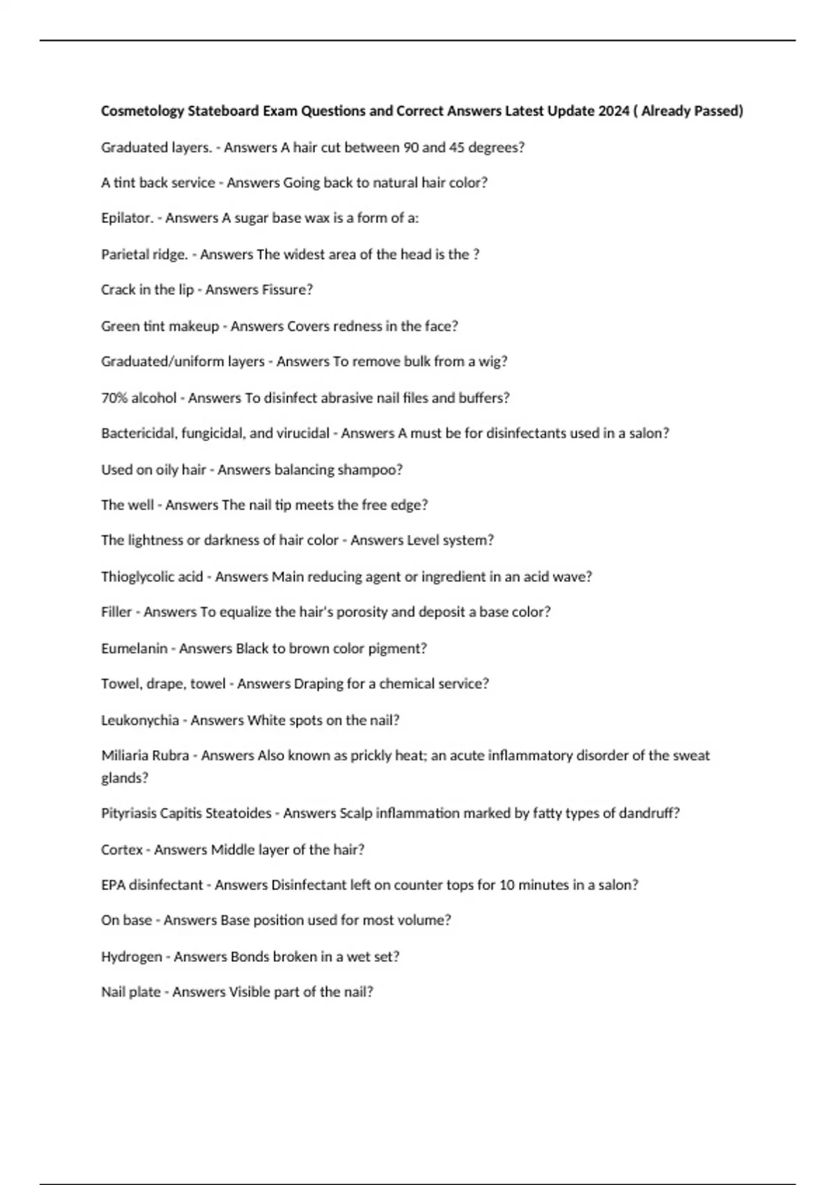 Cortex - Answers Middle layer of the hair?