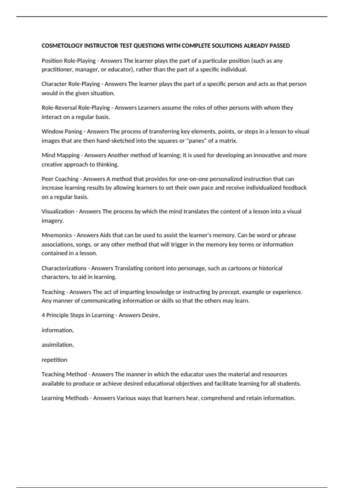 Learning Methods - Answers Various ways that learners hear, comprehend and retain information.