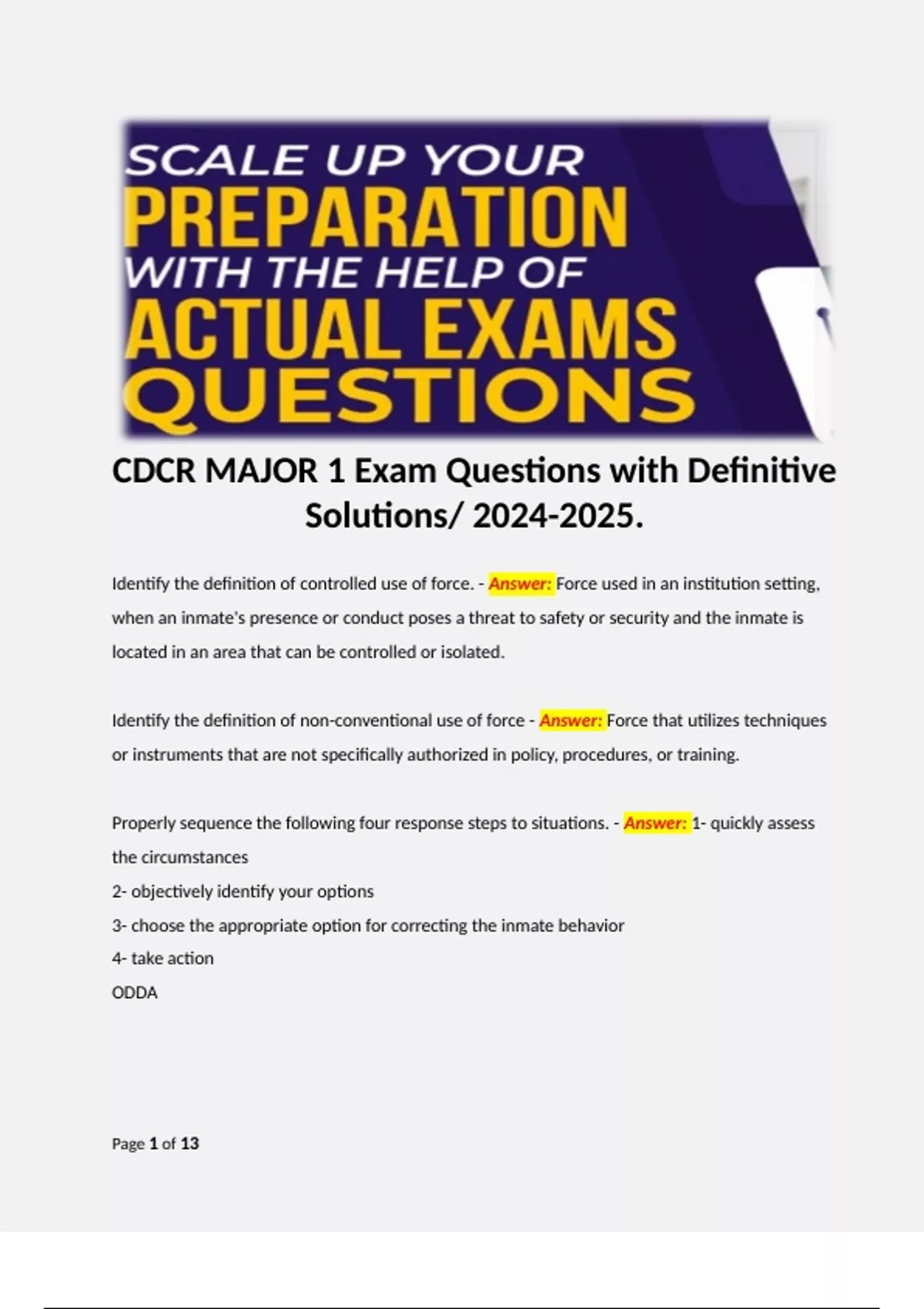 Identify the definition of controlled use of force. - Answer: Force used in an institution setting,