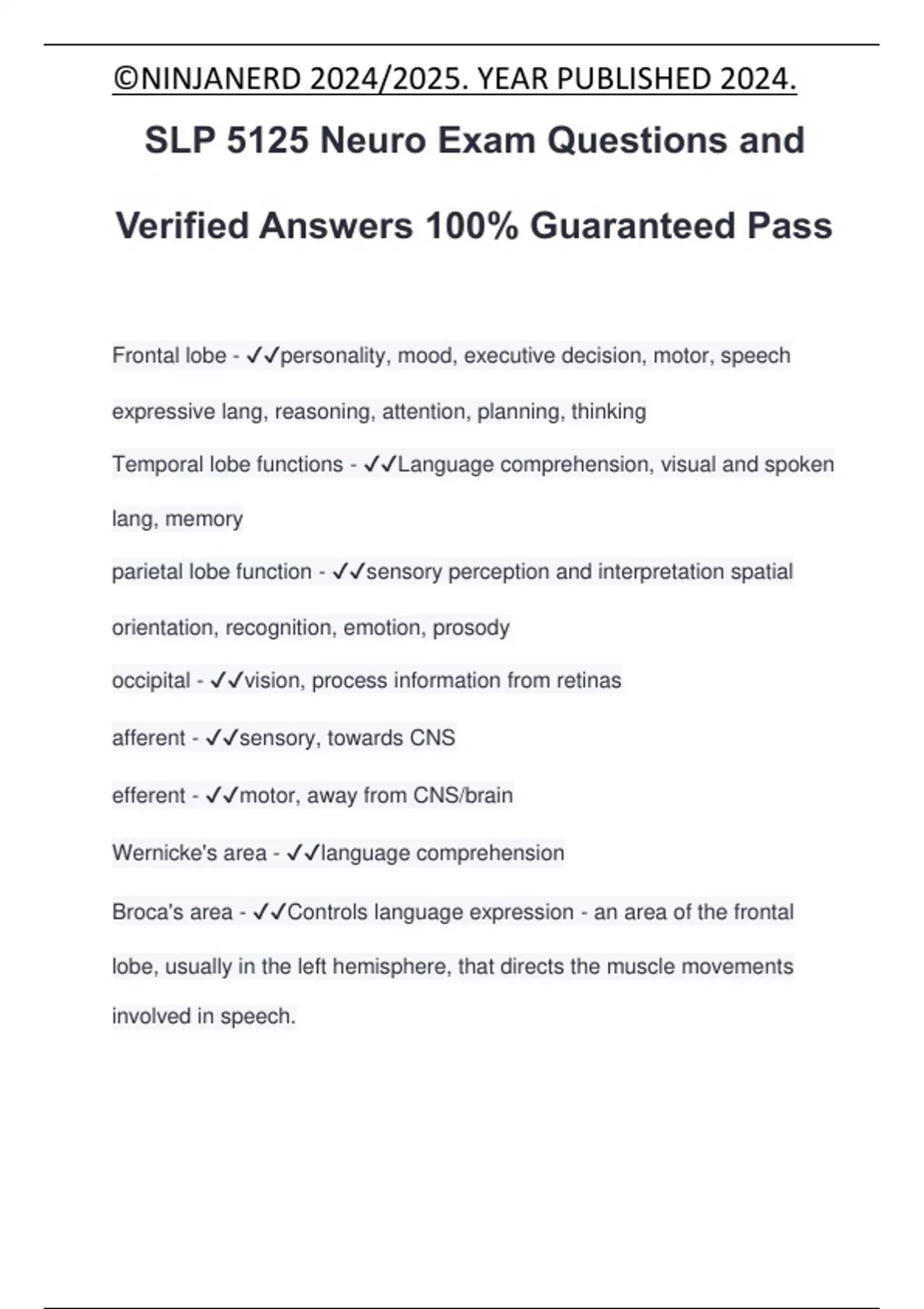 SLP 5125 Neuro Exam Questions and