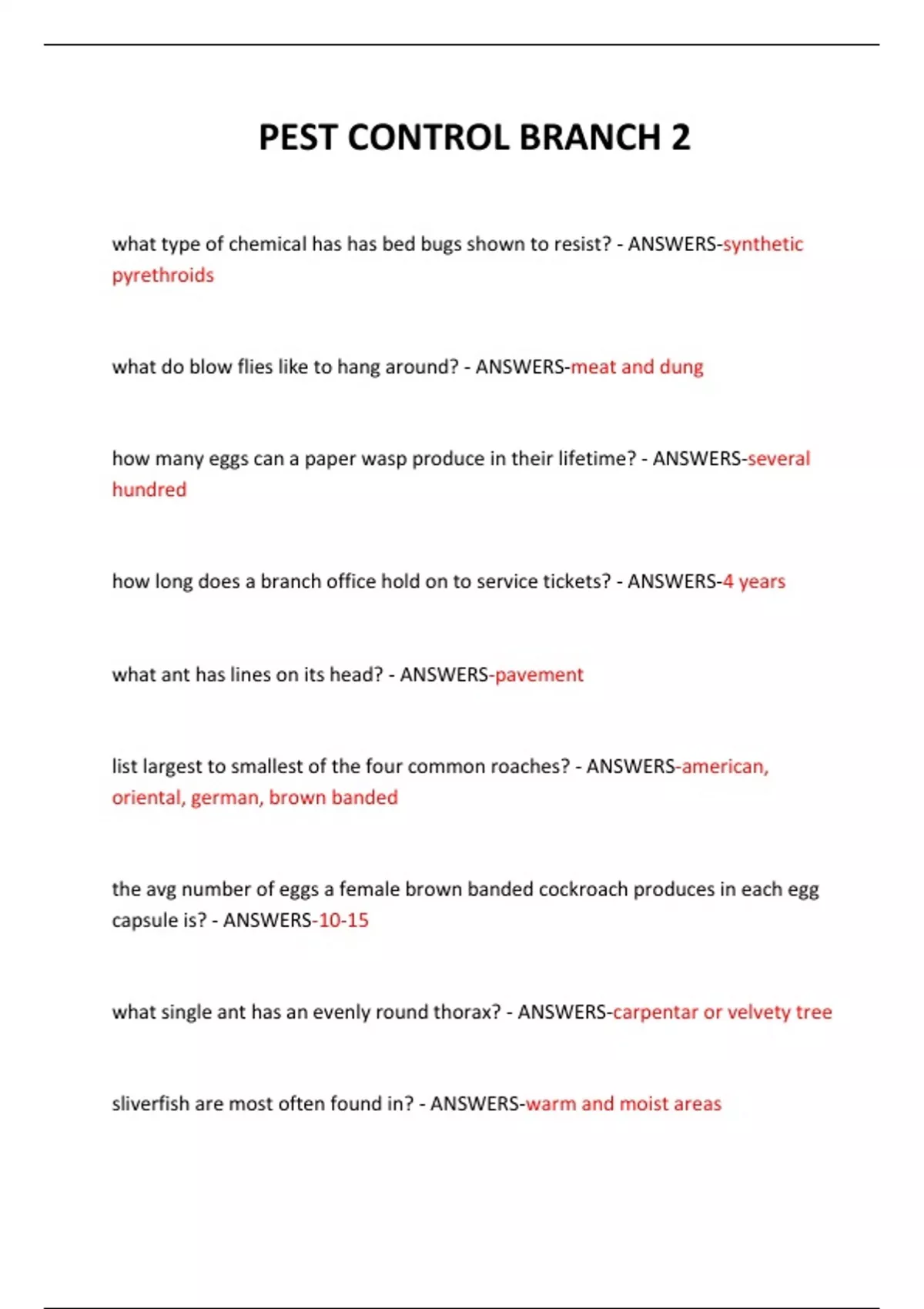 PEST CONTROL BRANCH 2 QUESTIONS AND ANSWERS 2024