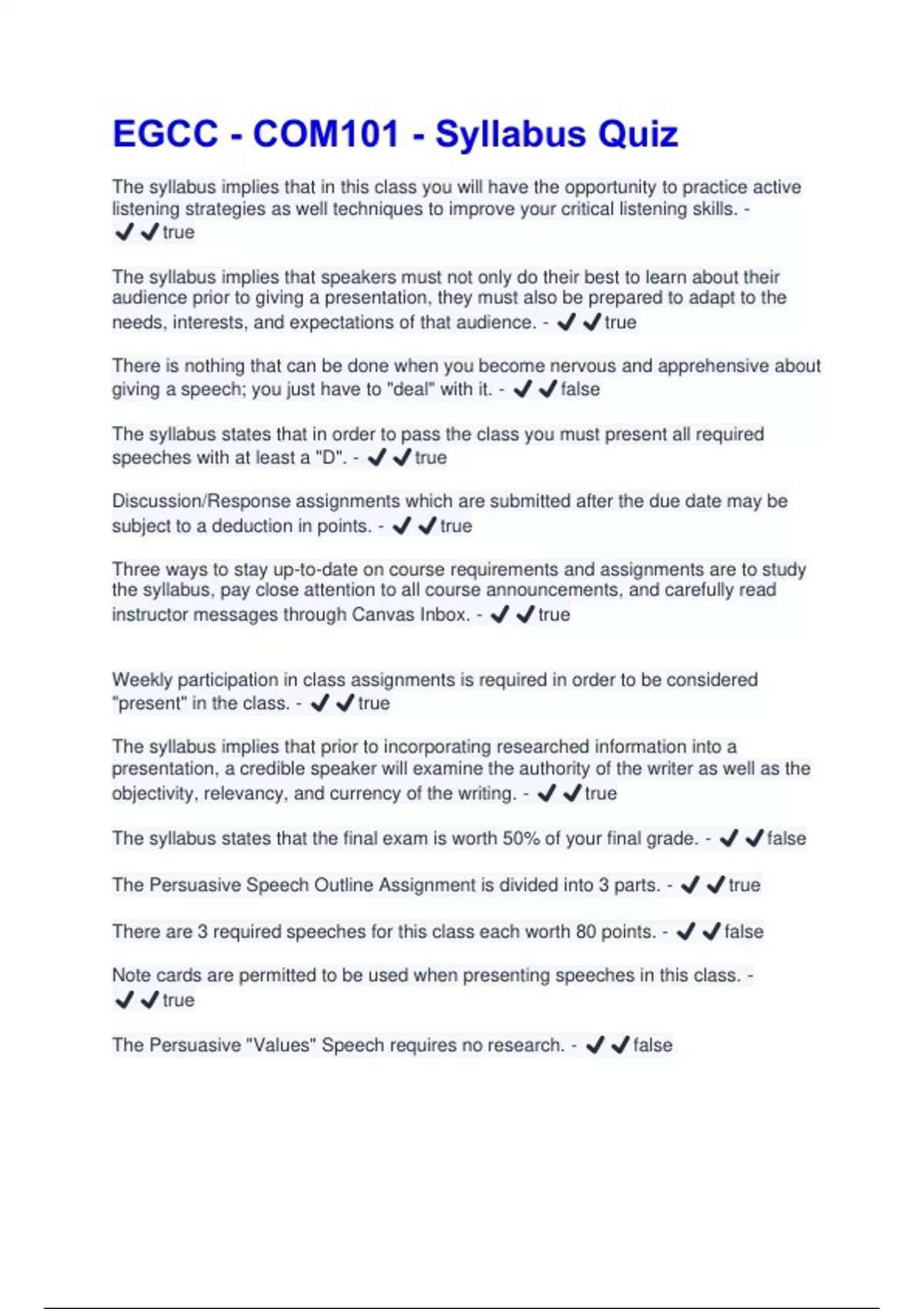 The syllabus states that the final exam is worth 50% of your final grade. - ✔️✔️false