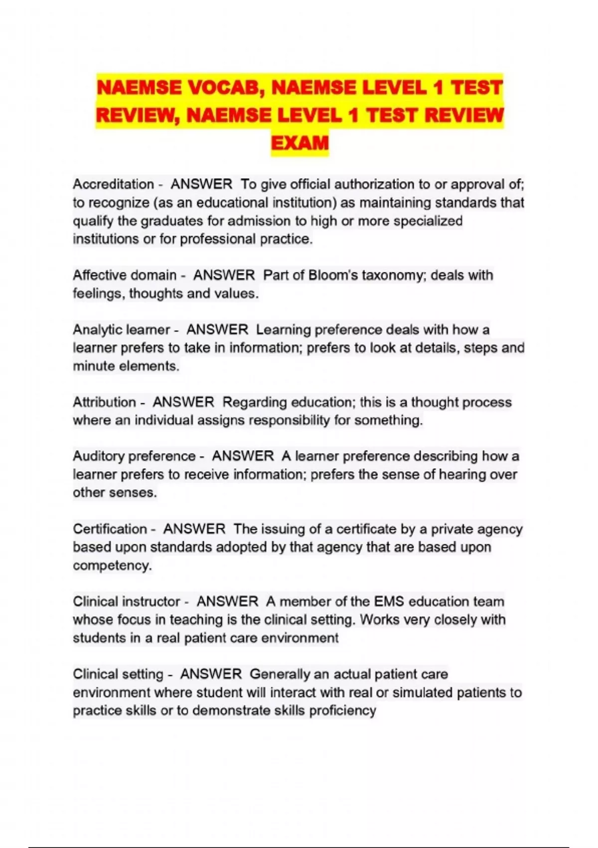 NAEMSE VOCAB, NAEMSE LEVEL 1 TEST REVIEW, NAEMSE LEVEL 1 TEST REVIEW EXAM...