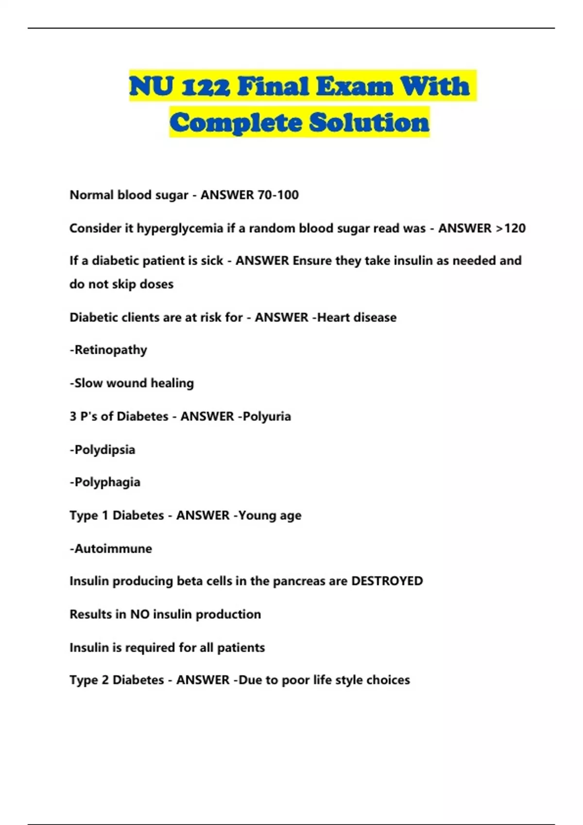 Diabetic clients are at risk for - ANSWER -Heart disease