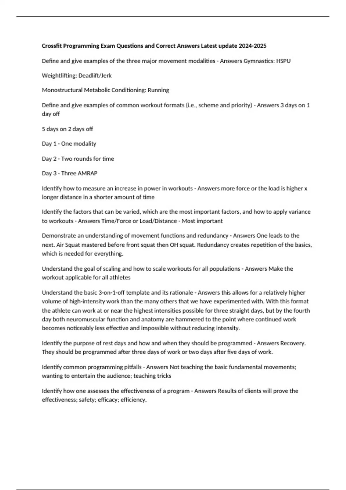 Identify the purpose of rest days and how and when they should be programmed - Answers Recovery.