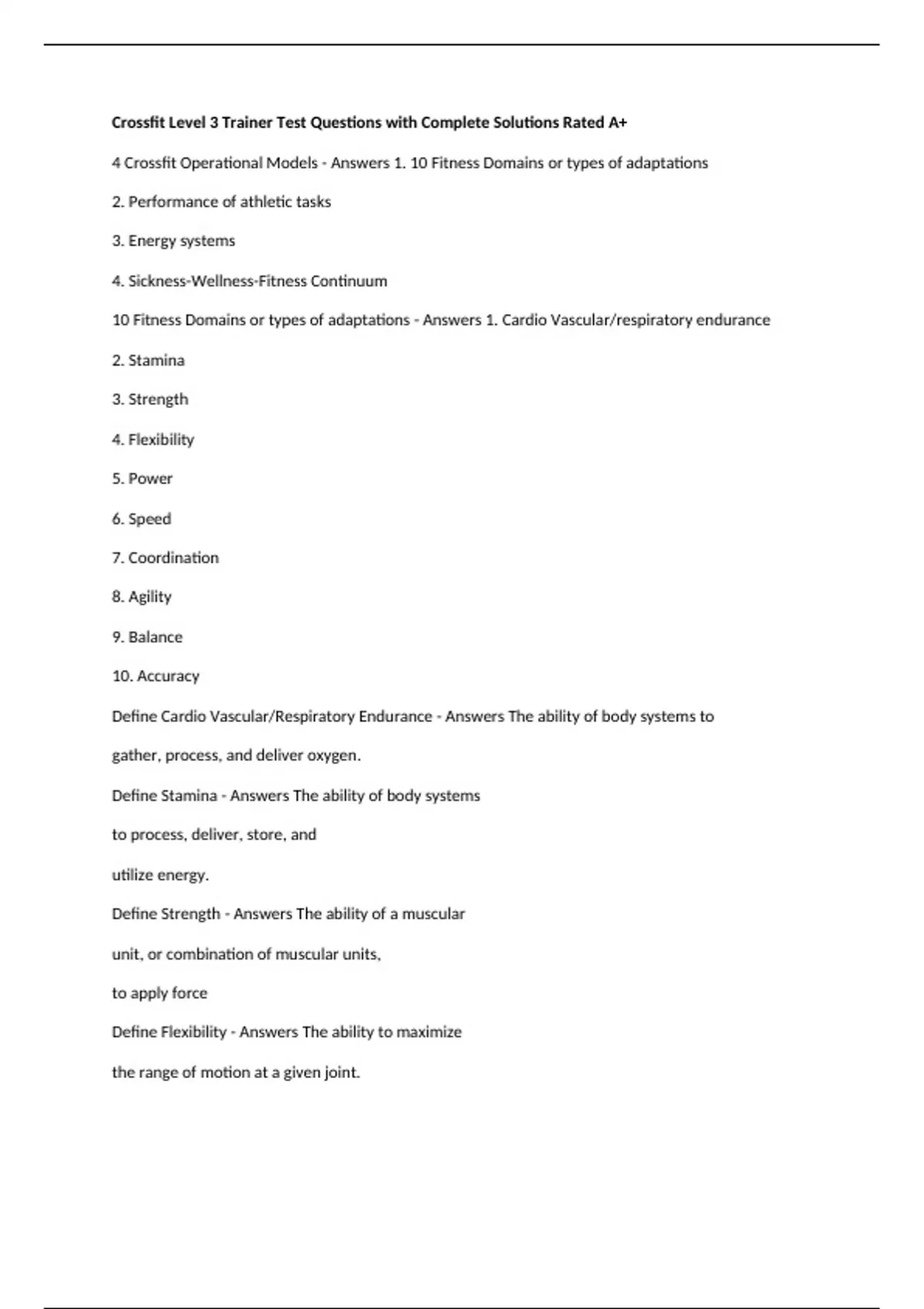 10 Fitness Domains or types of adaptations - Answers 1. Cardio Vascular/respiratory endurance