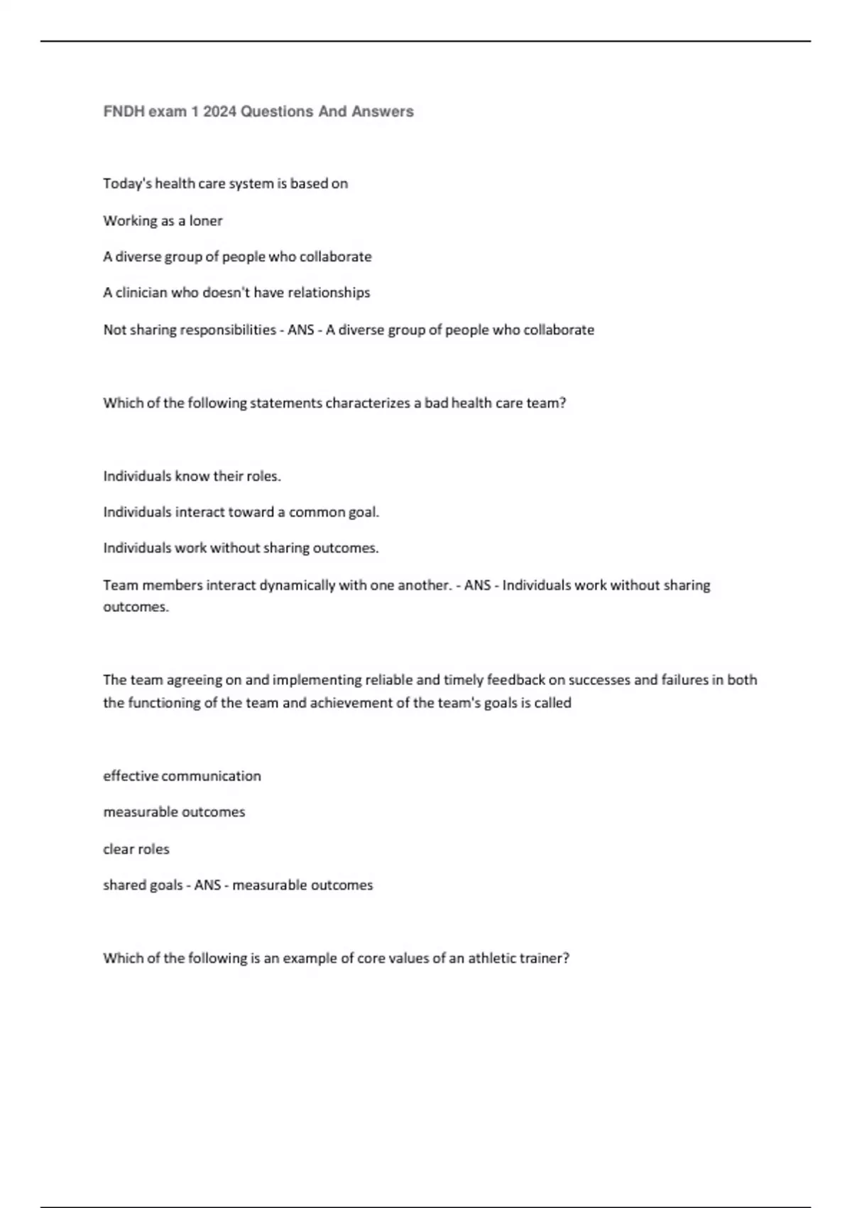 FNDH exam 1 2024 Questions And Answers