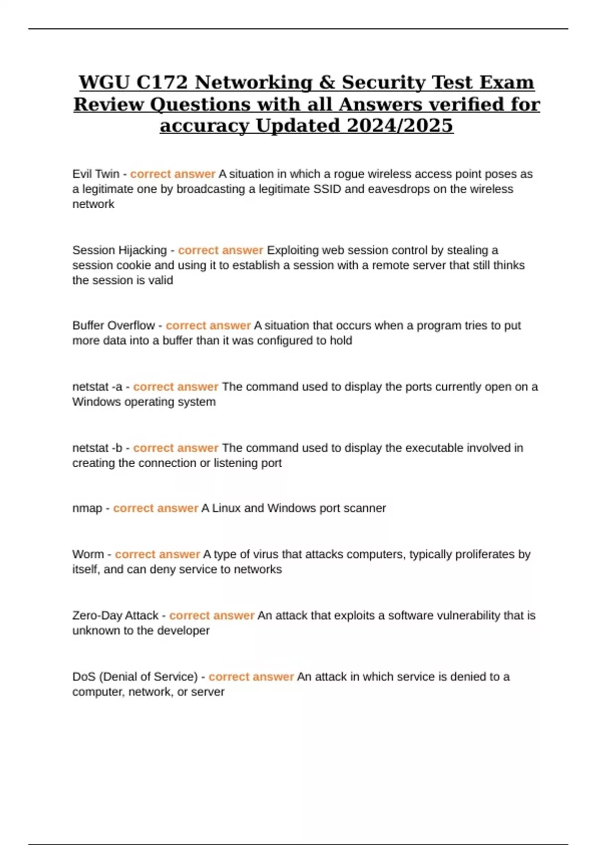 Zero-Day Attack - correct answer An attack that exploits a software vulnerability that is