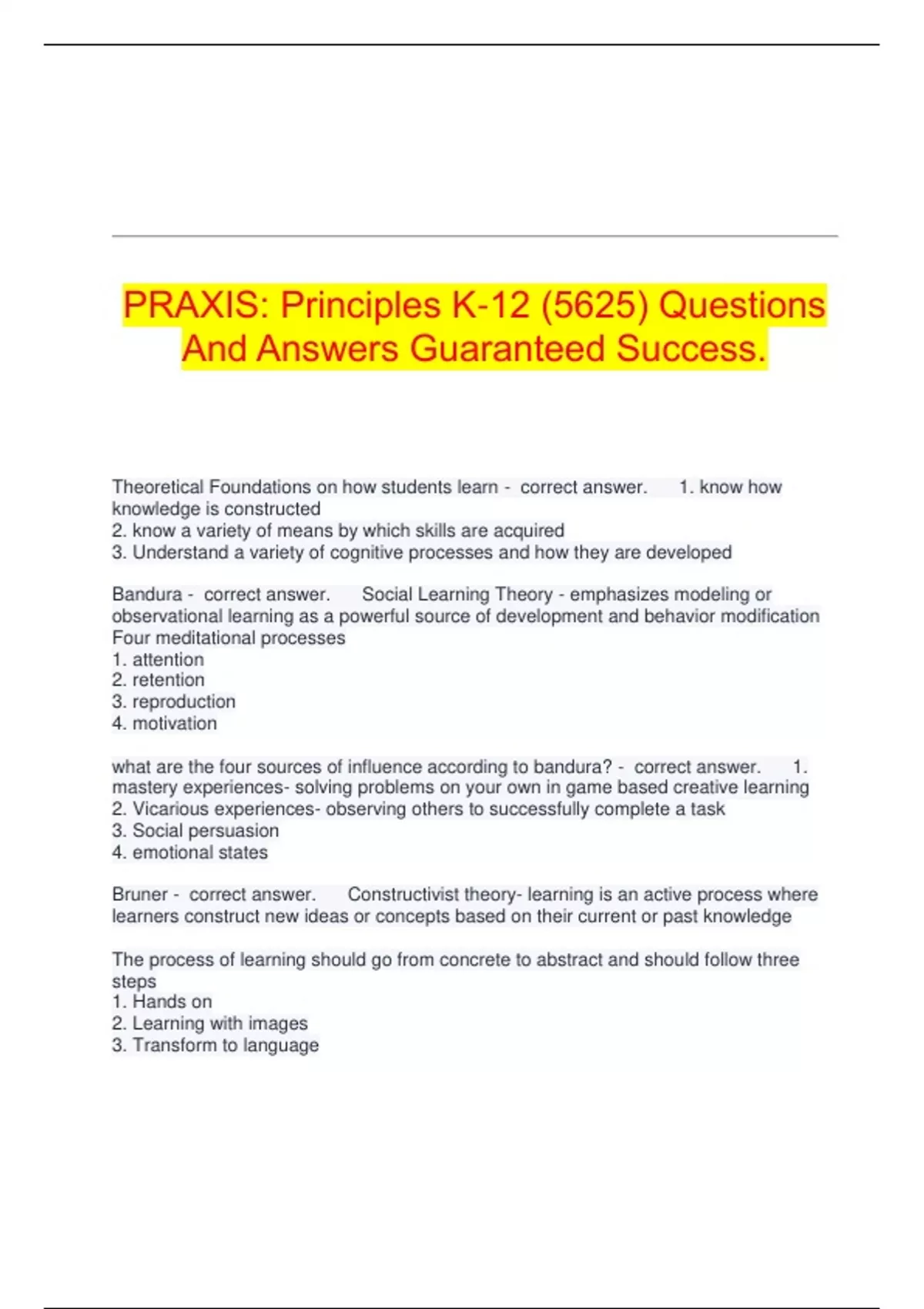 PRAXIS: Principles K-12 (5625) Questions And Answers Guaranteed Success.