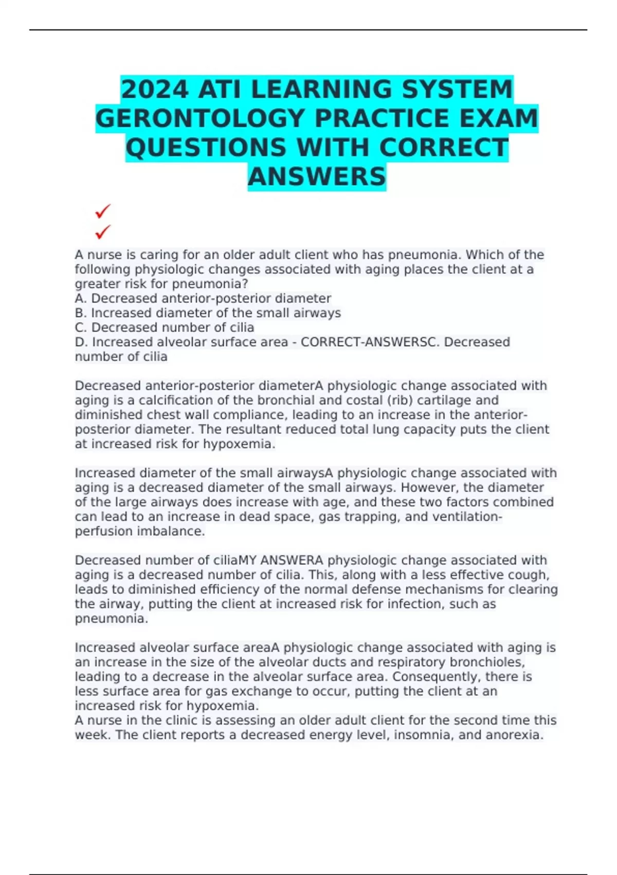 2024 ATI LEARNING SYSTEM GERONTOLOGY PRACTICE EXAM QUESTIONS WITH CORRECT ANSWERS
