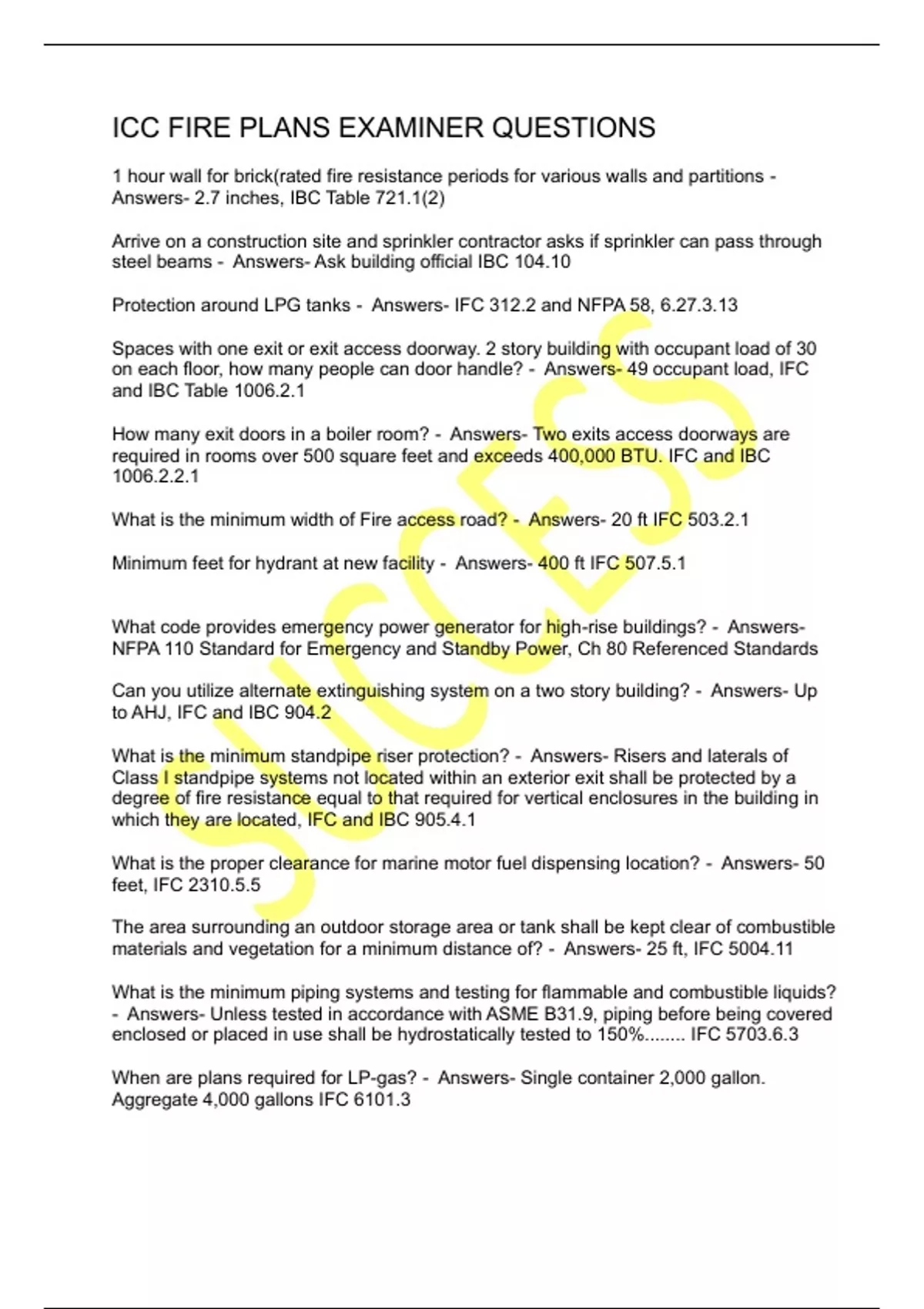 ICC FIRE PLANS EXAMINER QUESTIONS