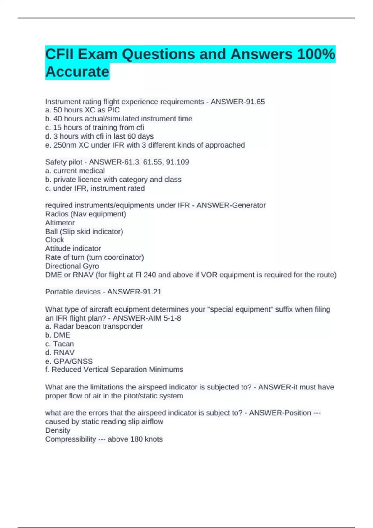required instruments/equipments under IFR - ANSWER-Generator