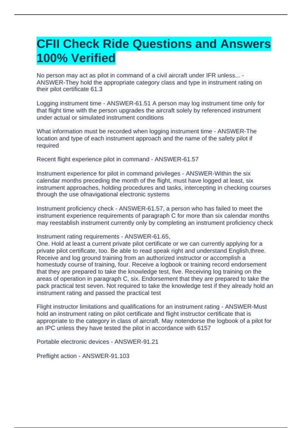 Preflight action - ANSWER-91.103