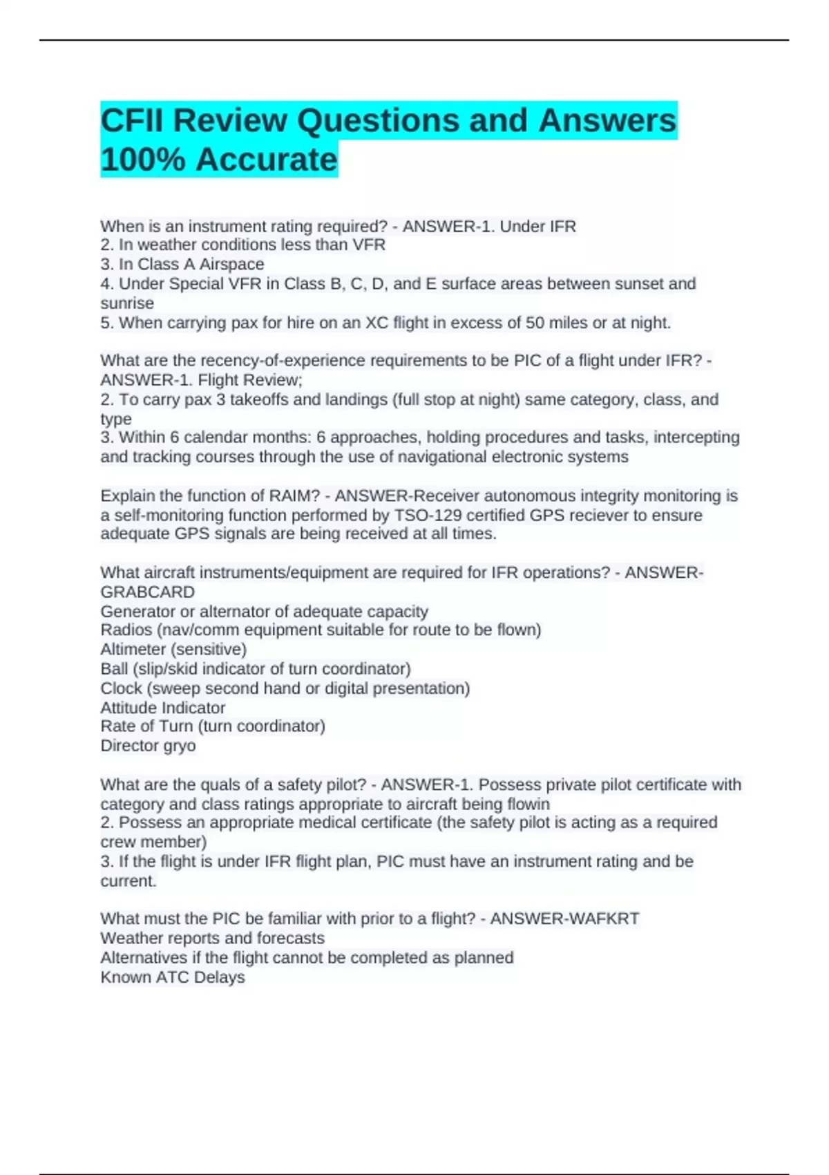 When is an instrument rating required? - ANSWER-1. Under IFR
