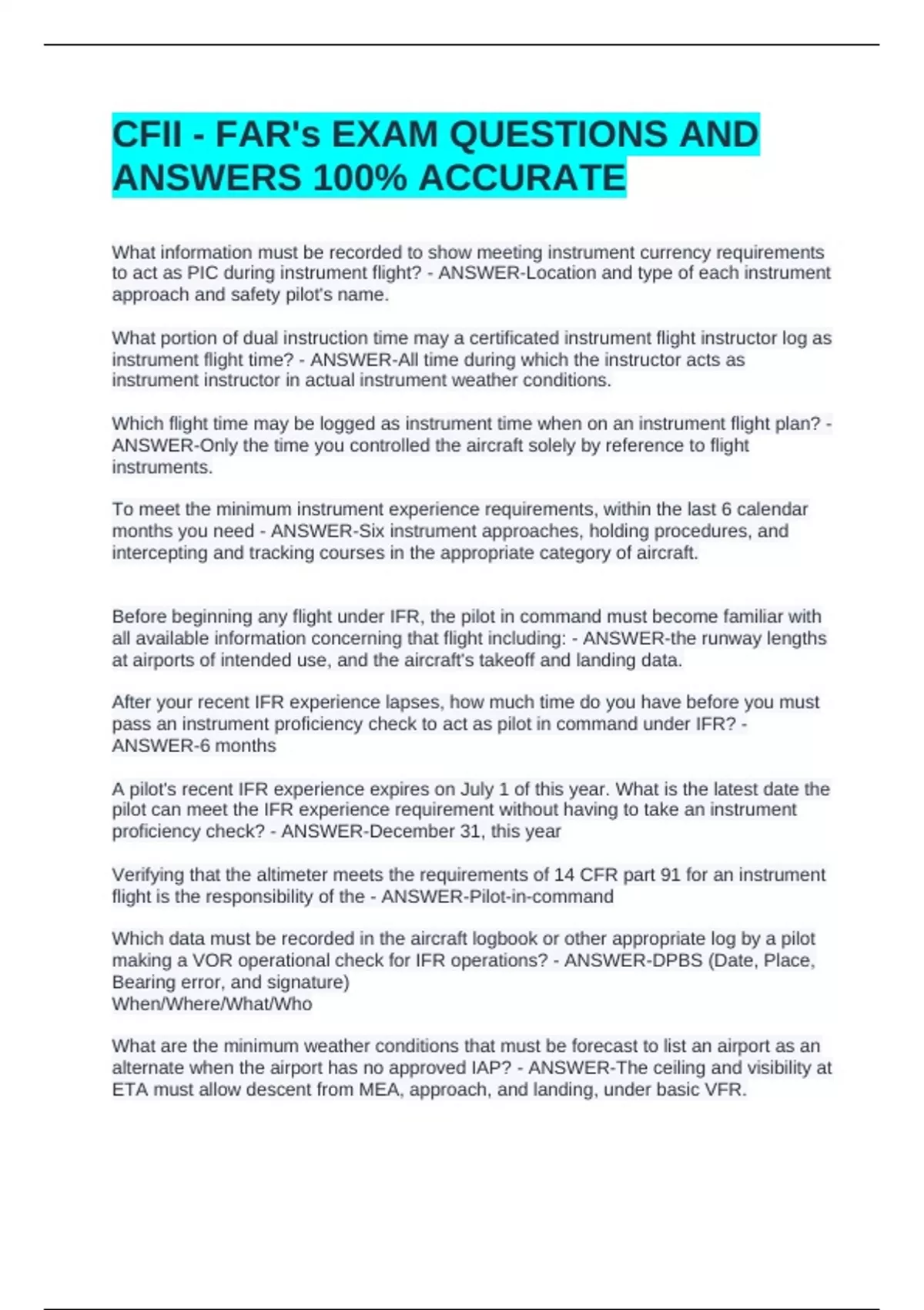 ANSWERS 100% ACCURATE