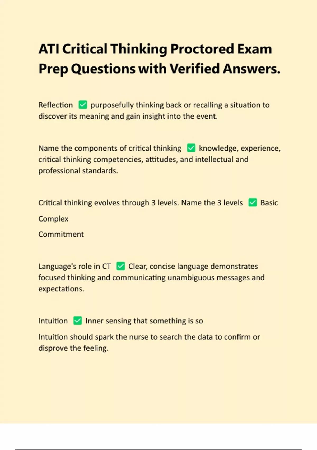 ATI Critical Thinking Proctored Exam Prep Questions with Verified Answers |Latest 2024/2025