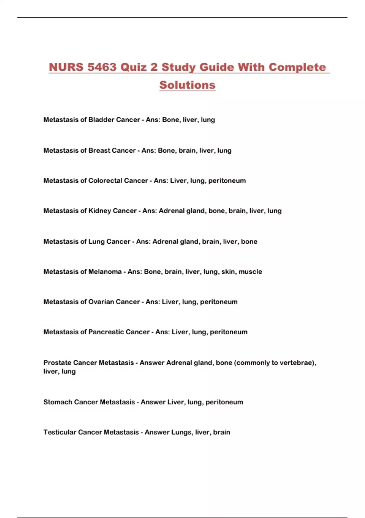 NURS 5463 Quiz 2 Study Guide With Complete Solutions...