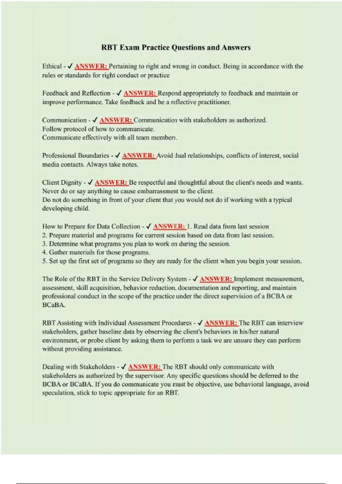 RBT Exam Practice Questions and Answers STUDY BUNDLE 2024/2025
