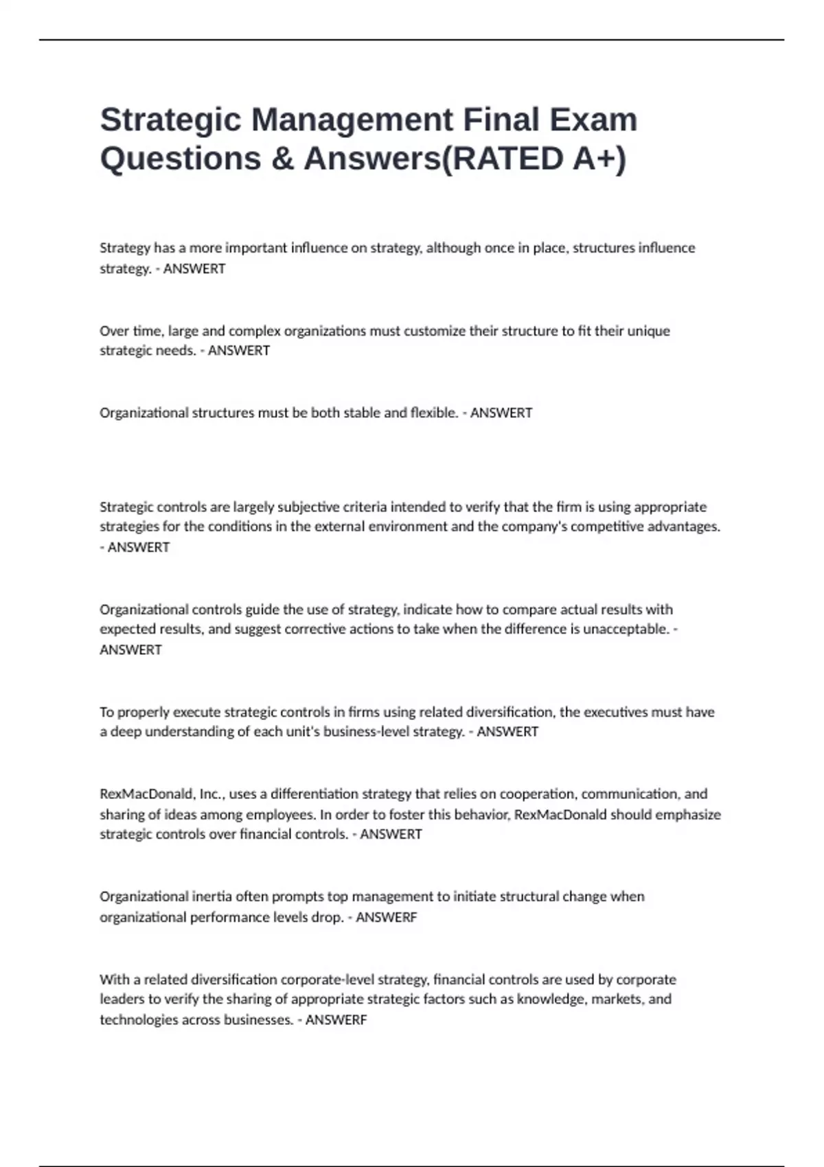 strategic controls. - ANSWERF