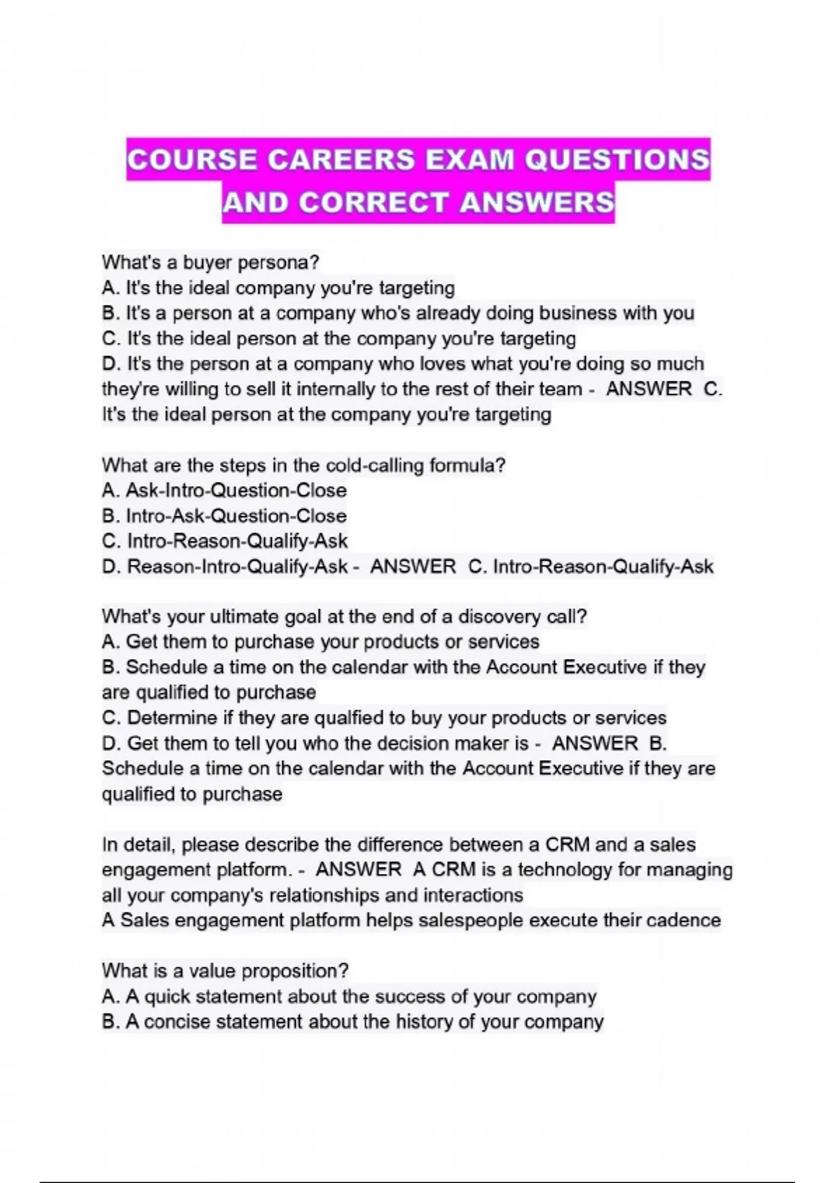 COURSE CAREERS EXAM QUESTIONS AND CORRECT ANSWERS...