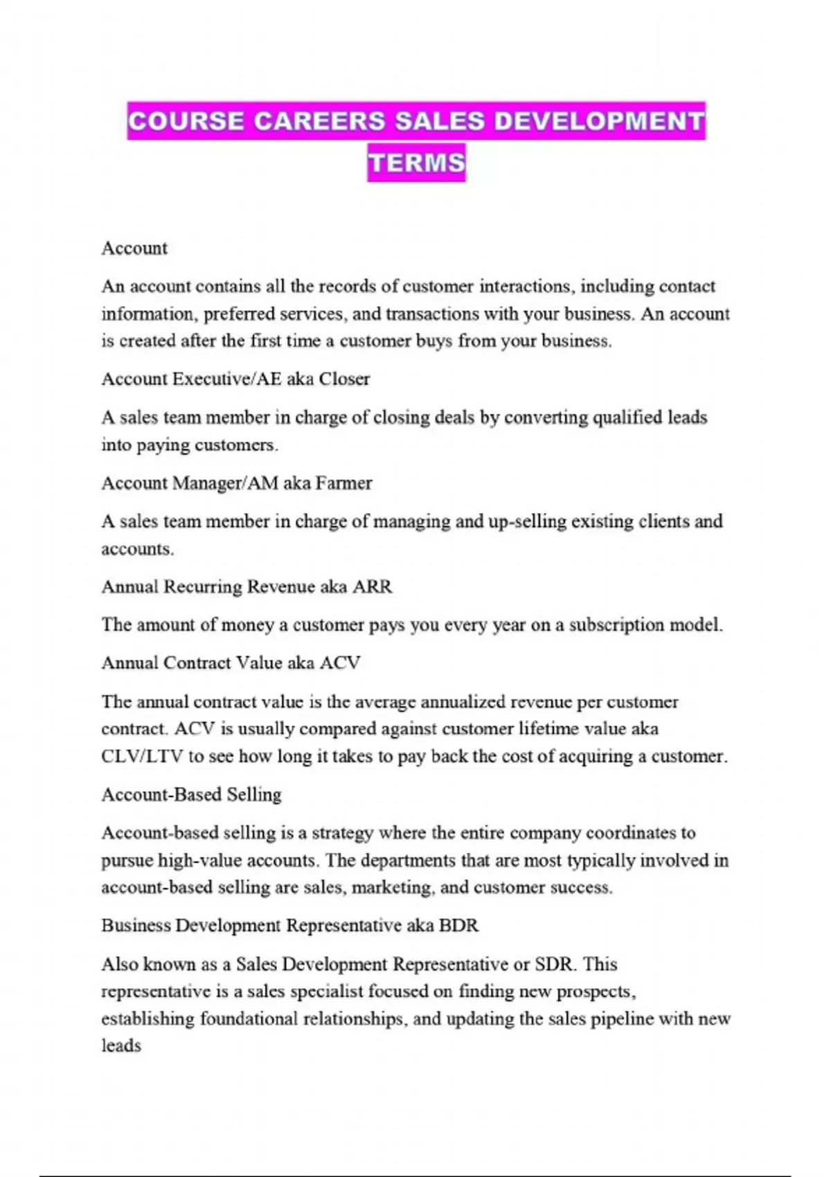 COURSE CAREERS SALES DEVELOPMENT TERMS