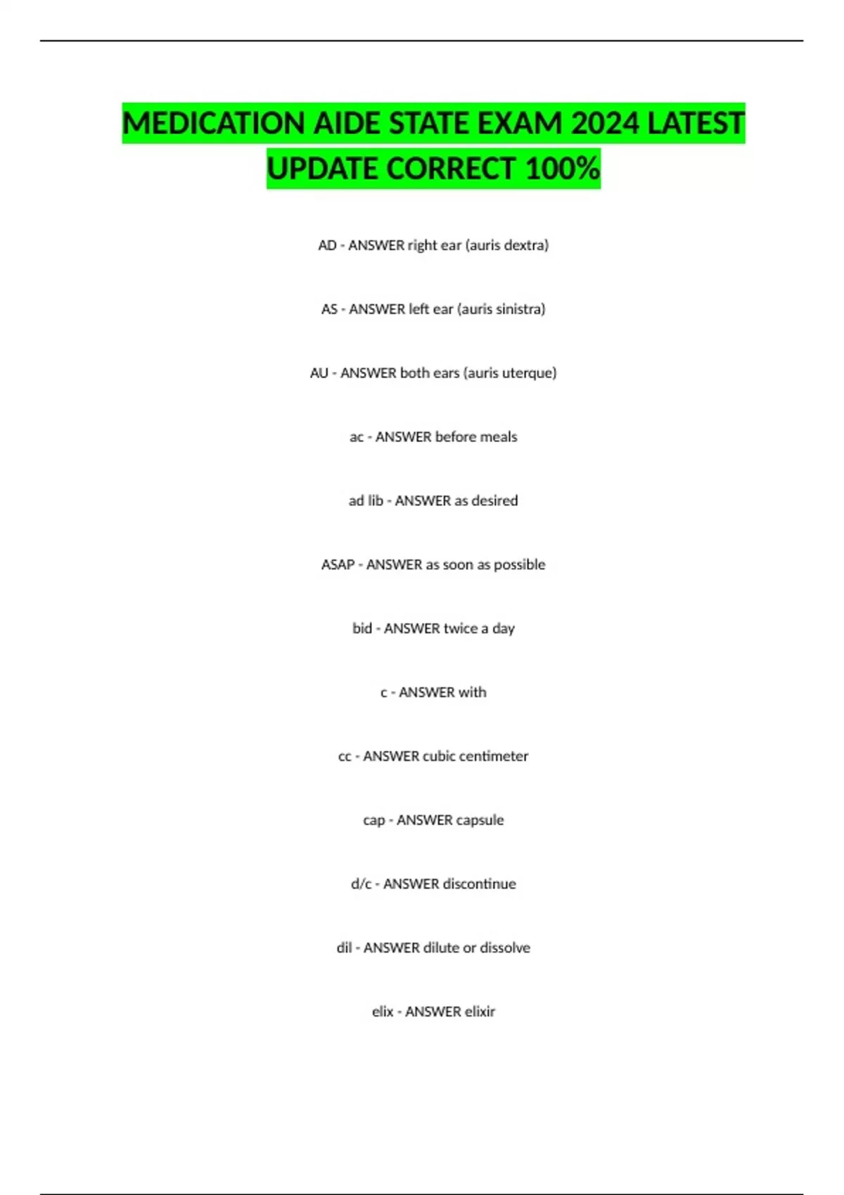 MEDICATION AIDE STATE EXAM 2024 LATEST