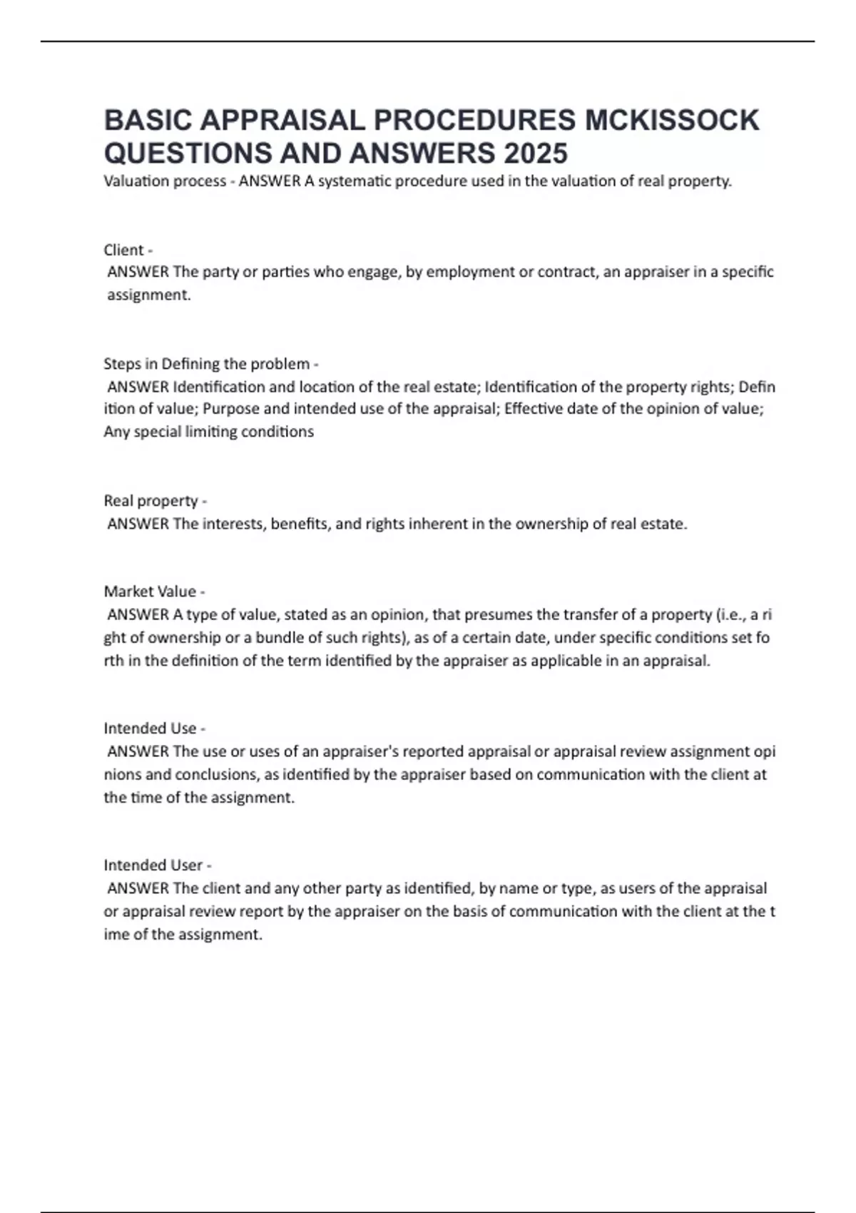 Valuation,process,-,ANSWER,A,systematic,procedure,used,in,the,valuation,of,real,property.
