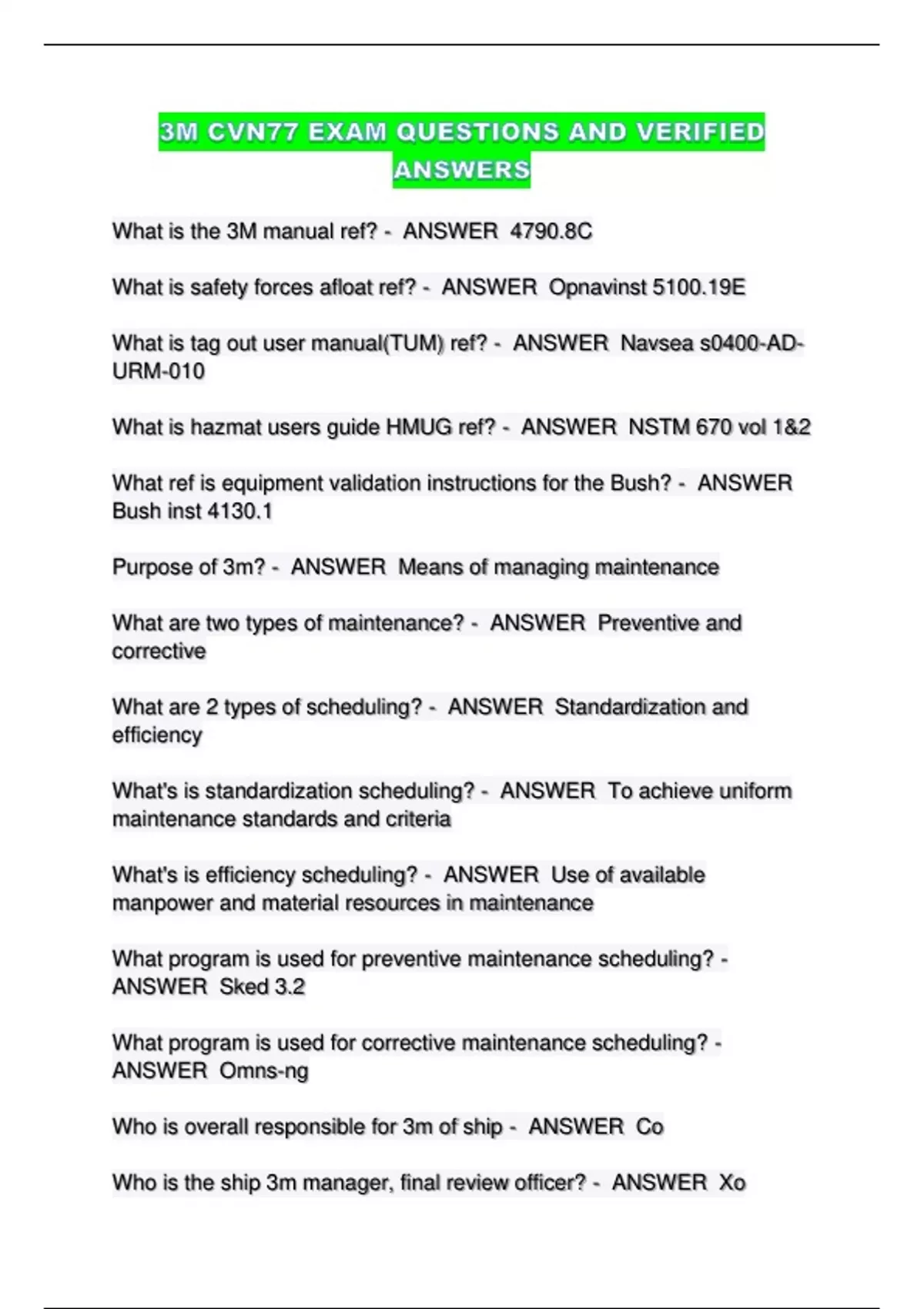 Purpose of 3m? - ANSWER Means of managing maintenance