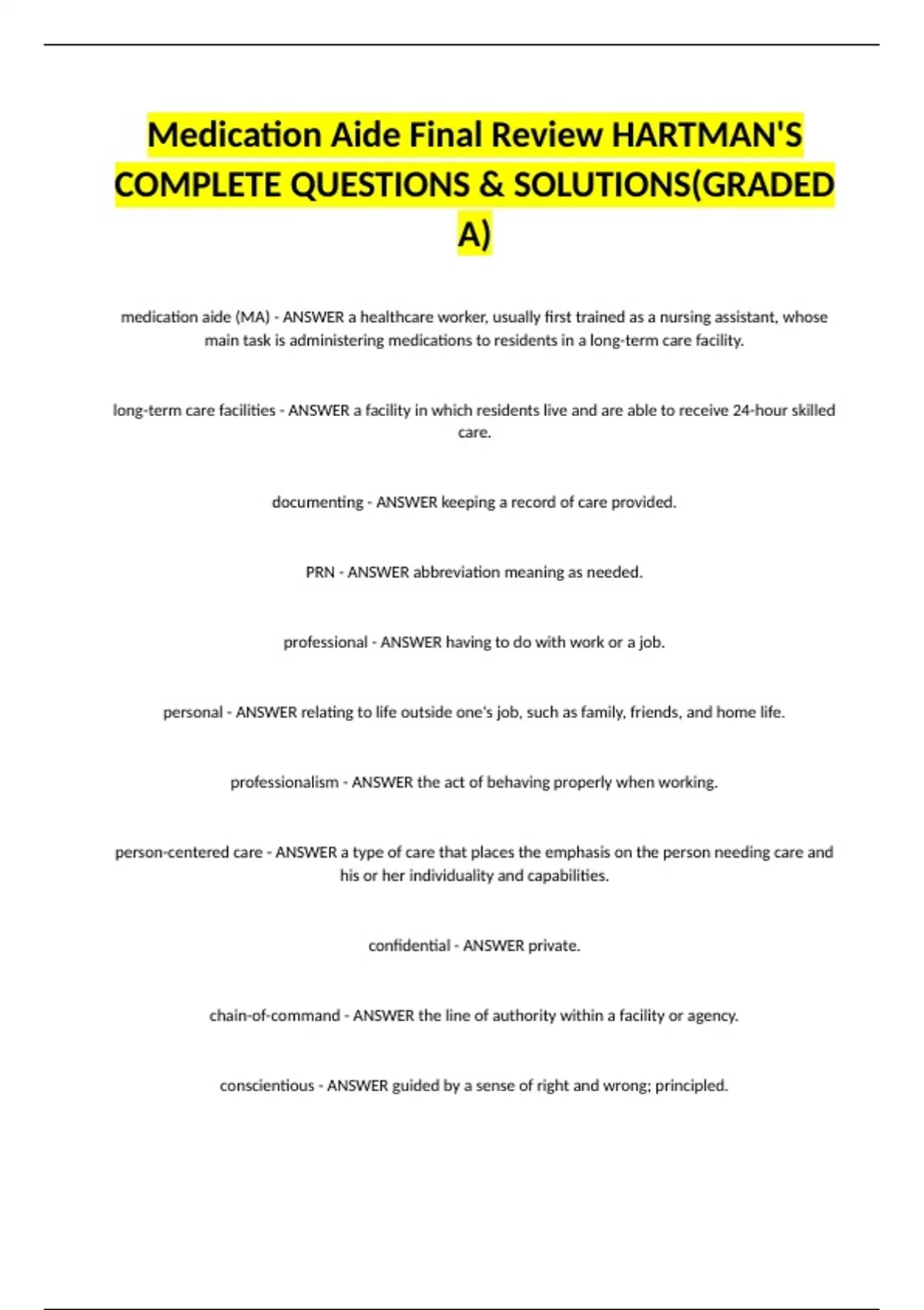 medication aide (MA) - ANSWER a healthcare worker, usually first trained as a nursing assistant, whose