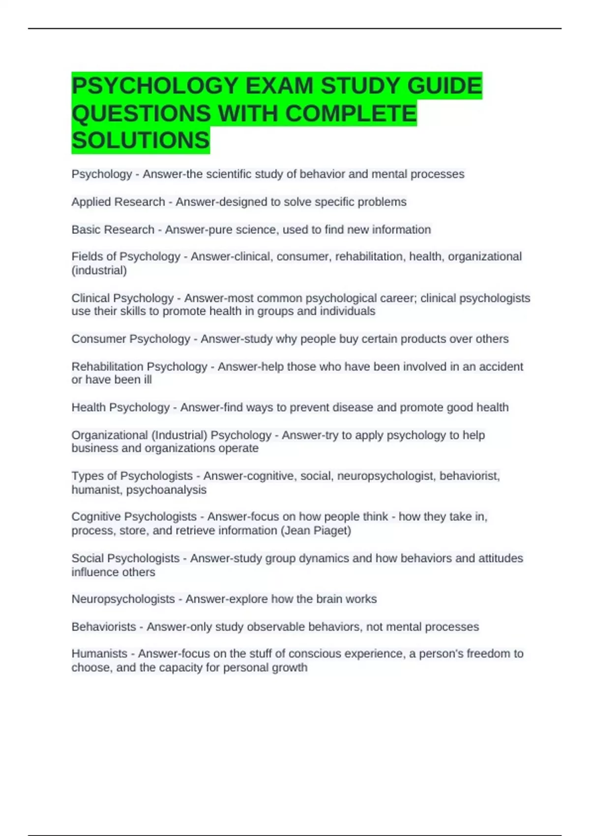 Psychology - Answer-the scientific study of behavior and mental processes