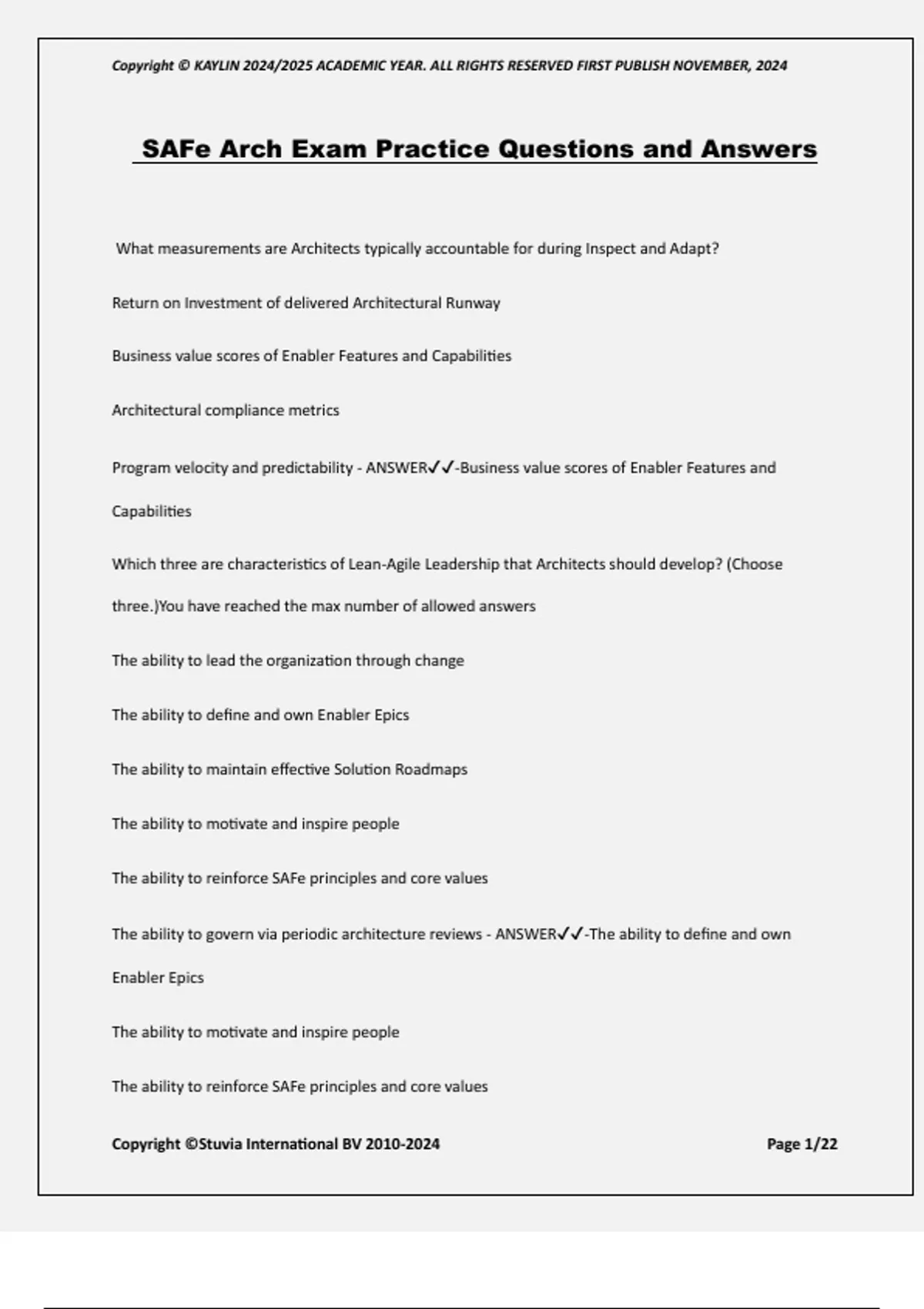 SAFe Arch Exam Practice Questions and Answers