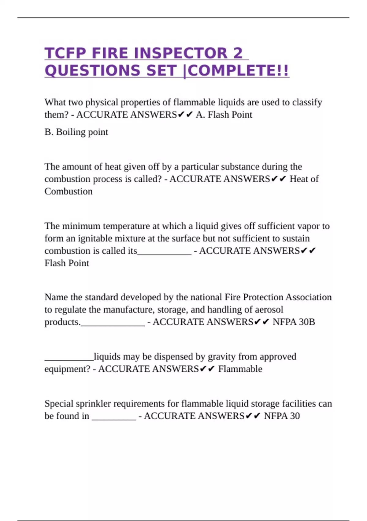 TCFP FIRE INSPECTOR 2 QUESTIONS SET |COMPLETE!!