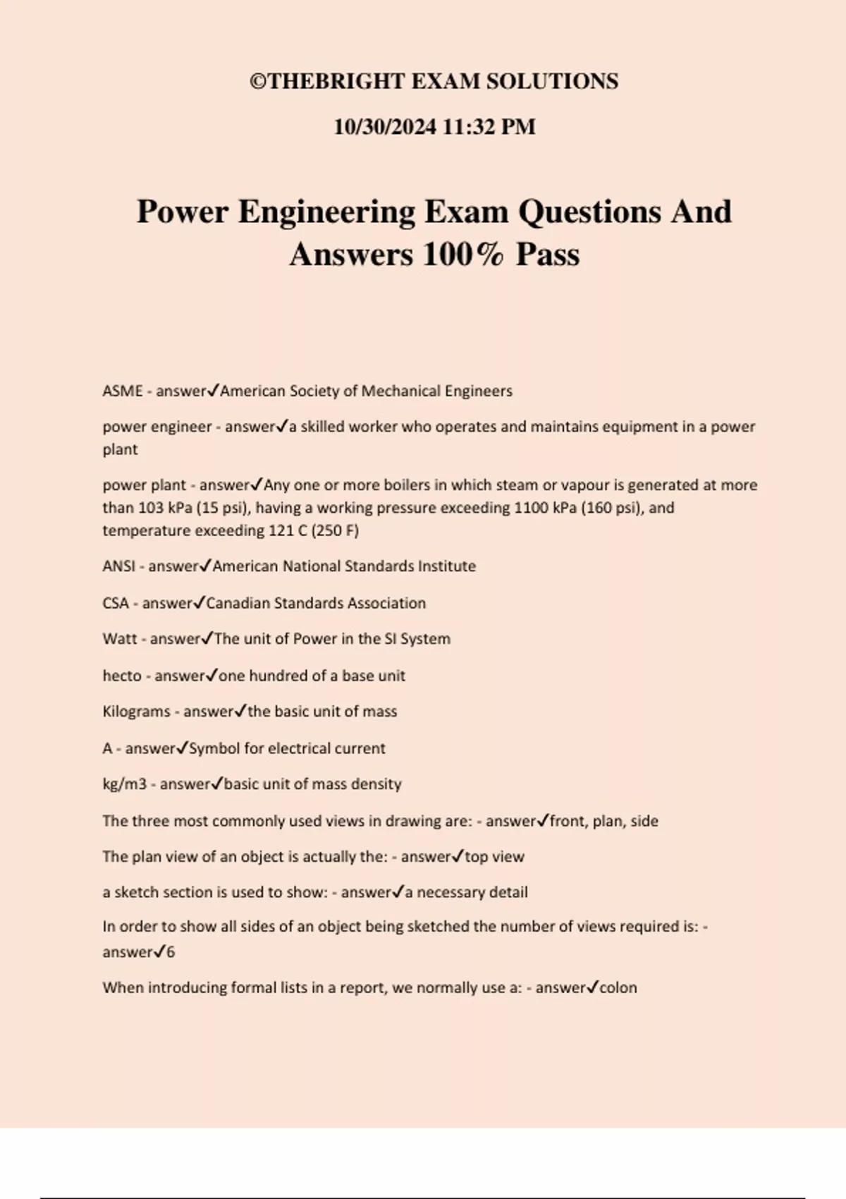 Power Engineering Exam Questions And