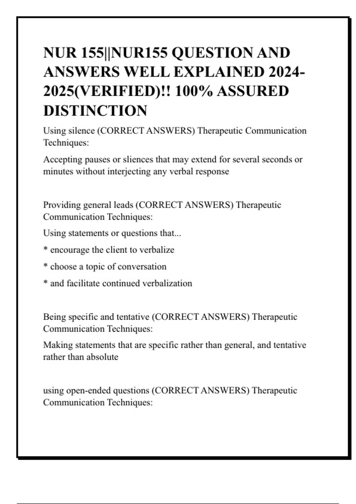 ANSWERS) Therapeutic Communication Techniques: