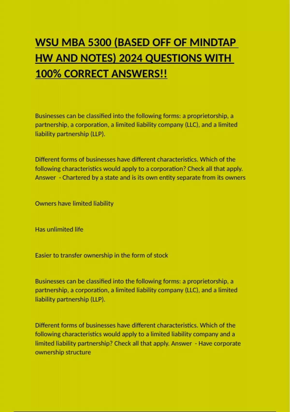 Different forms of businesses have different characteristics. Which of the