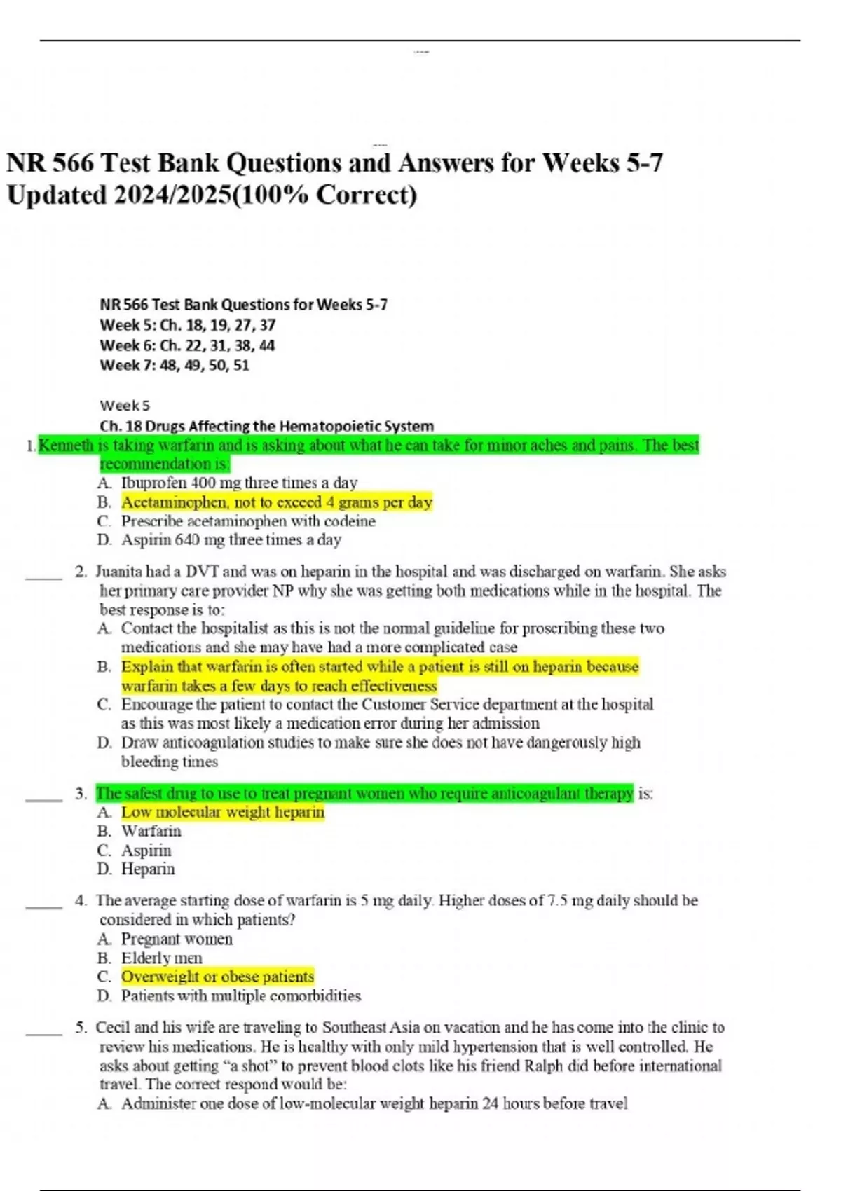 nr 566 test bank questions and answers for weeks 5