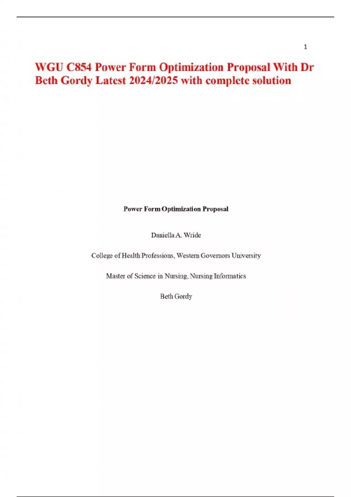 WGU C854 Power Form Optimization Proposal With Dr Beth Gordy Latest 2024/2025 with complete solution