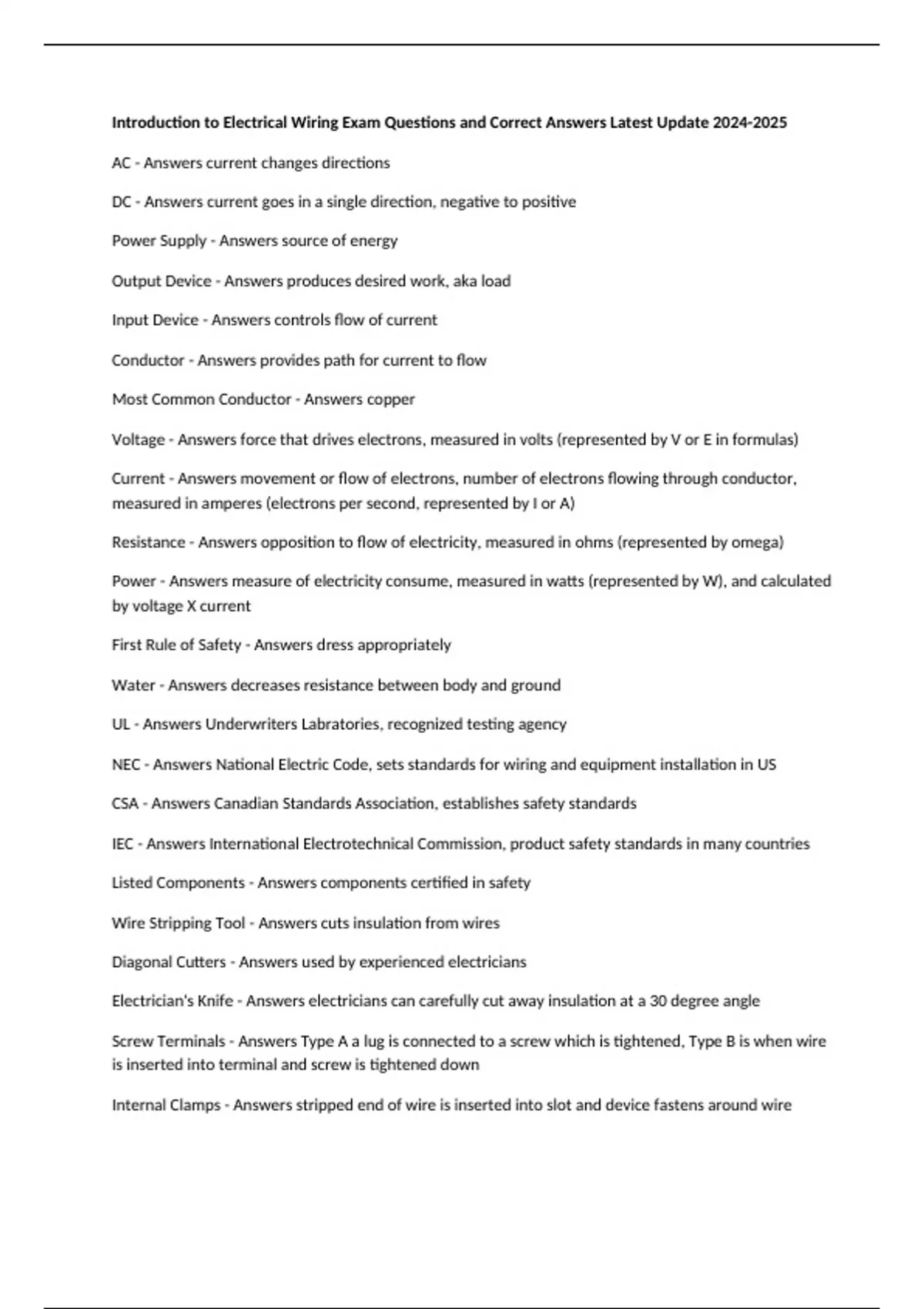 DC - Answers current goes in a single direction, negative to positive