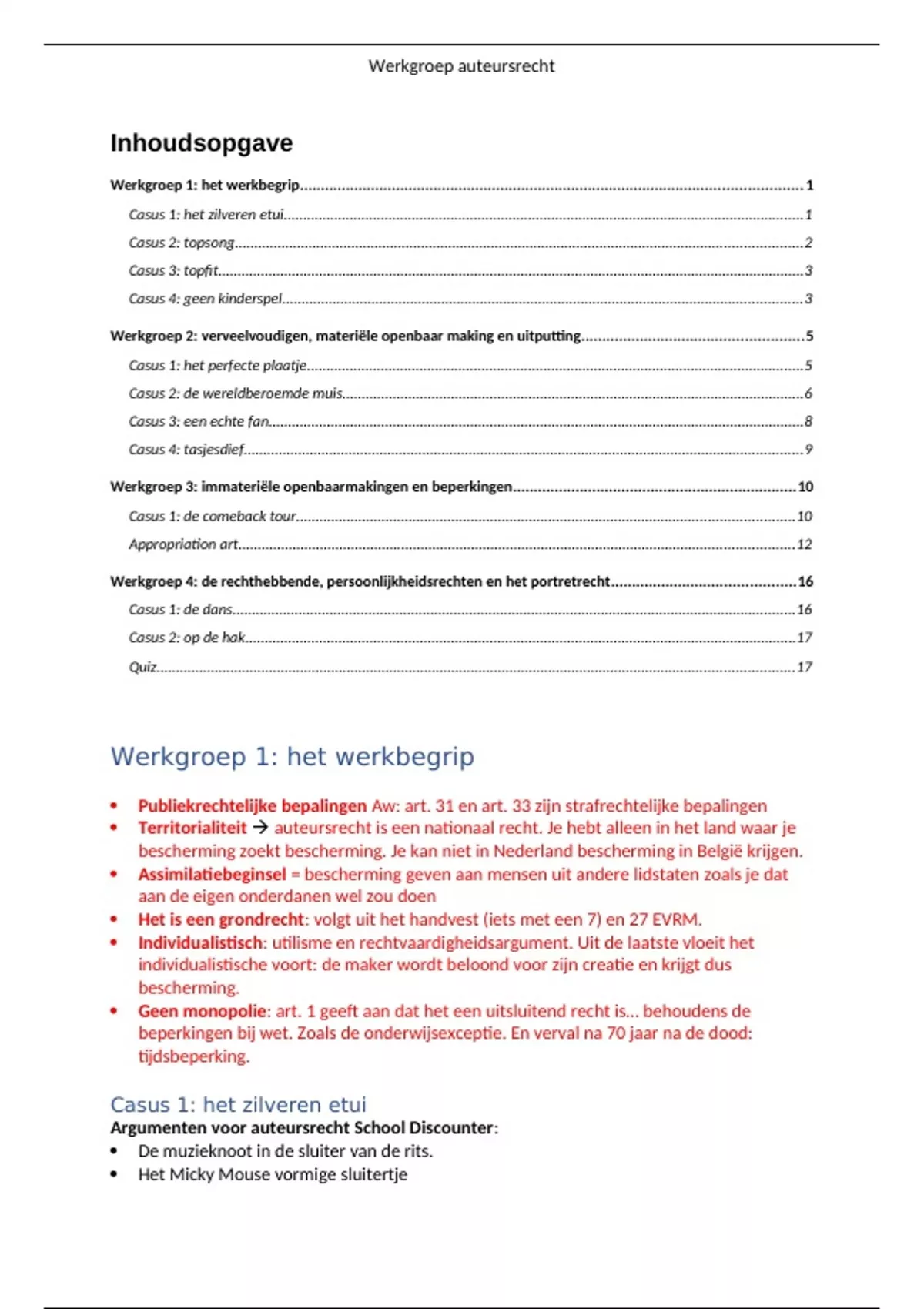 Alle werkgroep uitwerkingen van Auteursrecht 2023/2024 aan de Radboud Universiteit