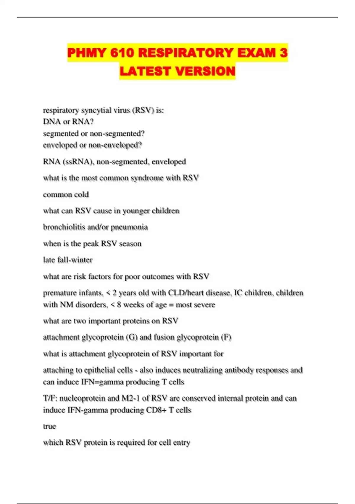 PHMY 610 RESPIRATORY EXAM 3 LATEST VERSION