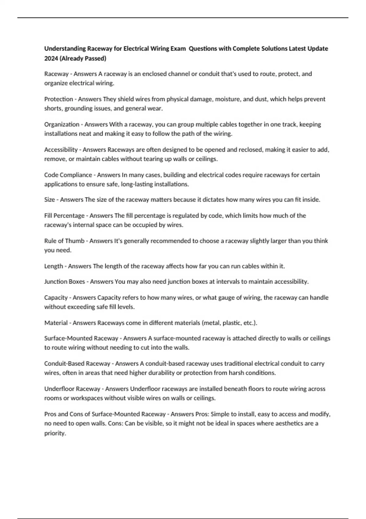 Material - Answers Raceways come in different materials (metal, plastic, etc.).