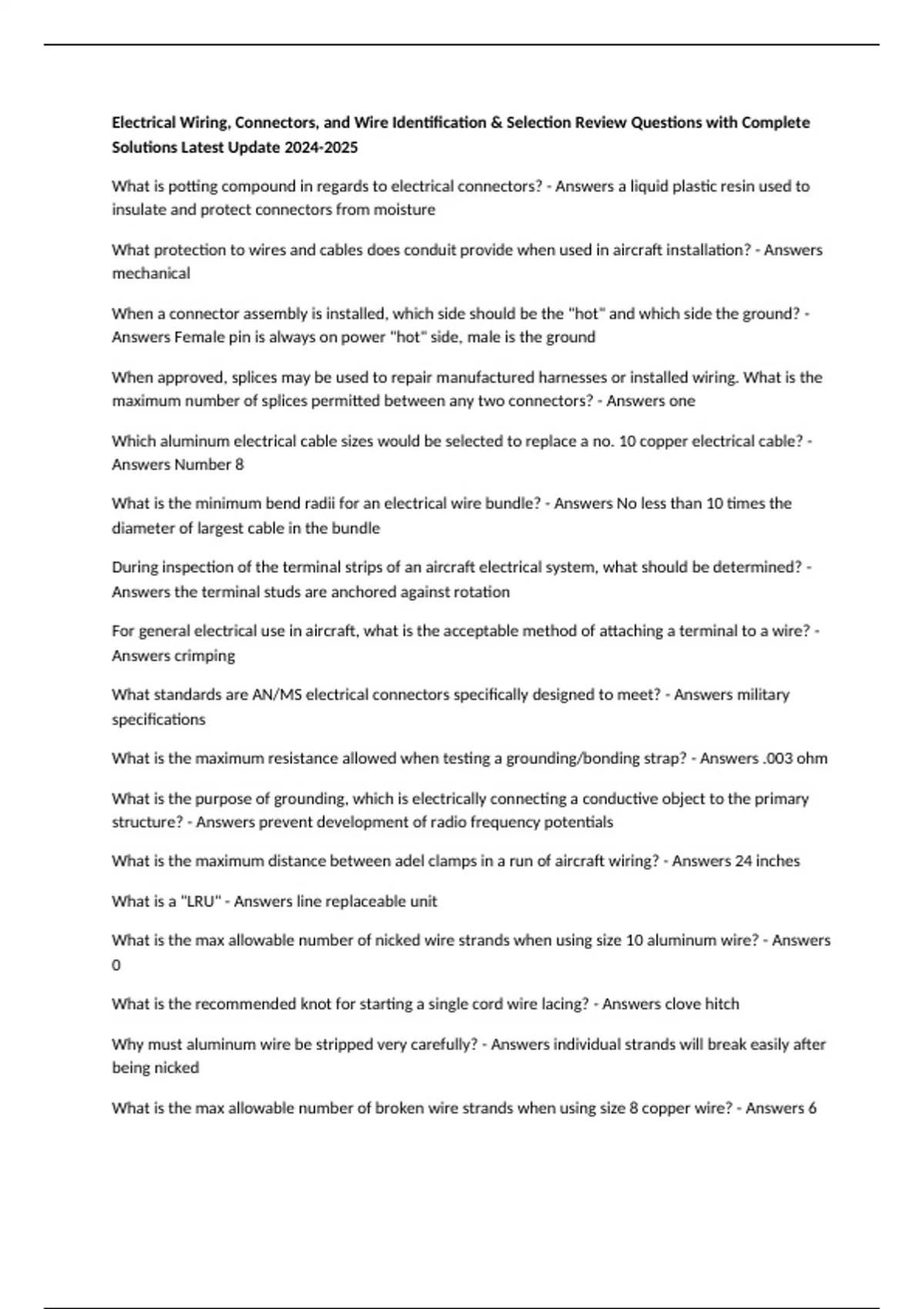 Electrical Wiring, Connectors, and Wire Identification & Selection Review Questions with Complete Solutions Latest Update
