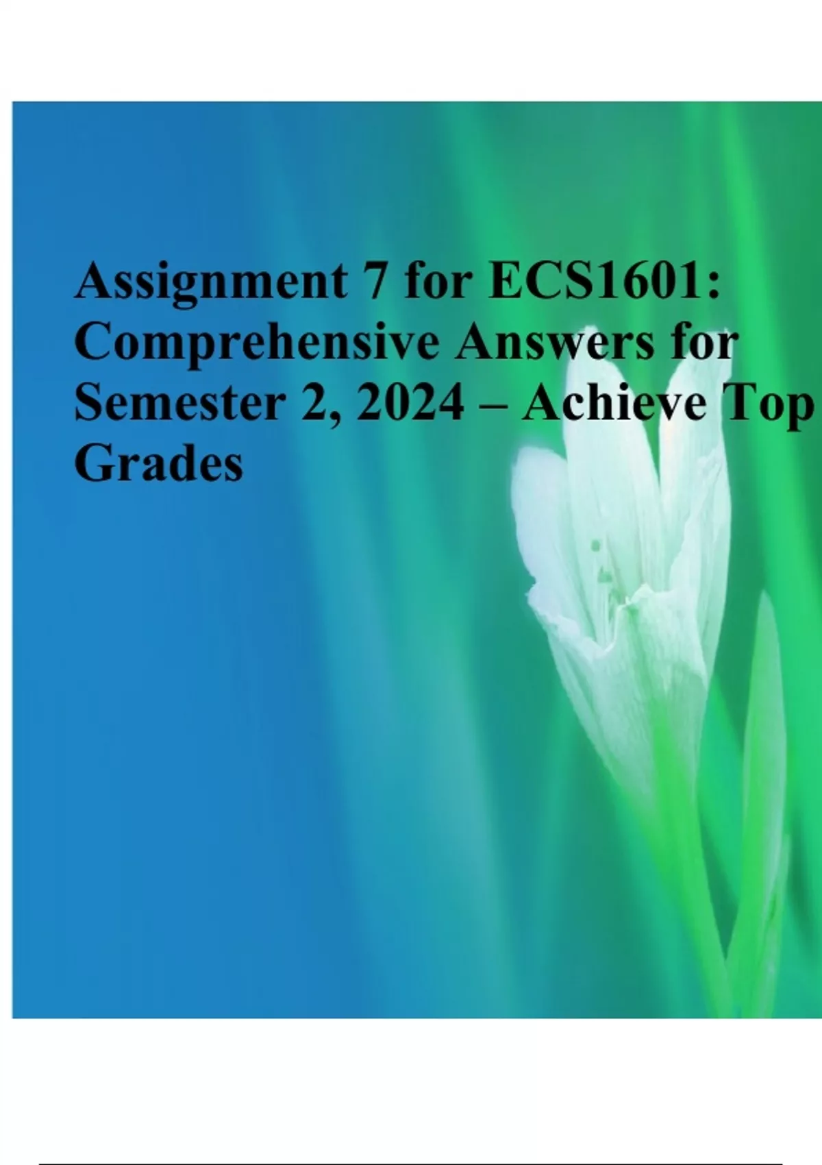 Assignment 7 for ECS1601: Comprehensive Answers for Semester 2, 2024 – Achieve Top Grades