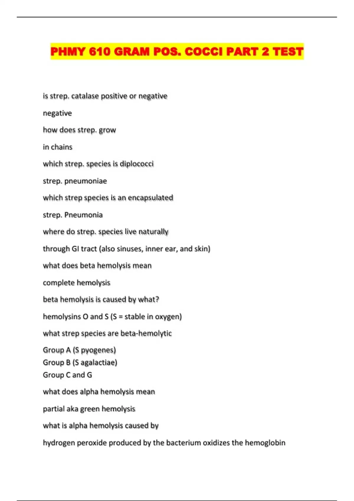PHMY 610 GRAM POS. COCCI PART 2 TEST....