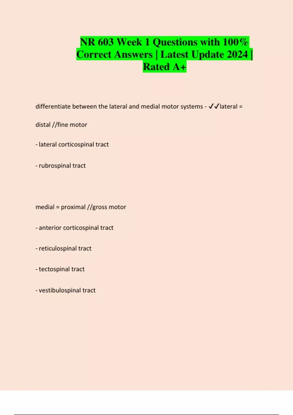 differentiate between the lateral and medial motor systems - ✔✔lateral =