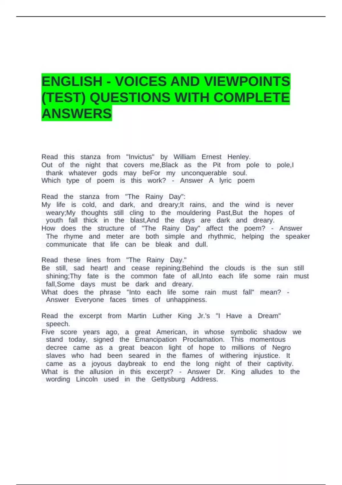 Read vvthe vvstanza vvfrom vv"The vvRainy vvDay":