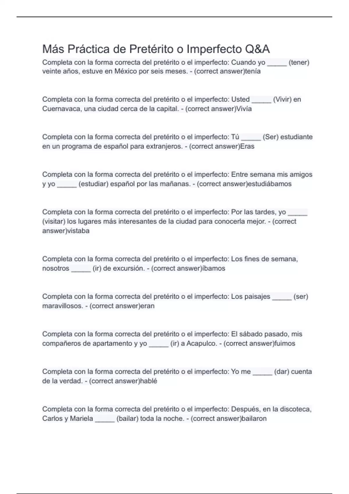 Más Práctica de Pretérito o Imperfecto Q&A
